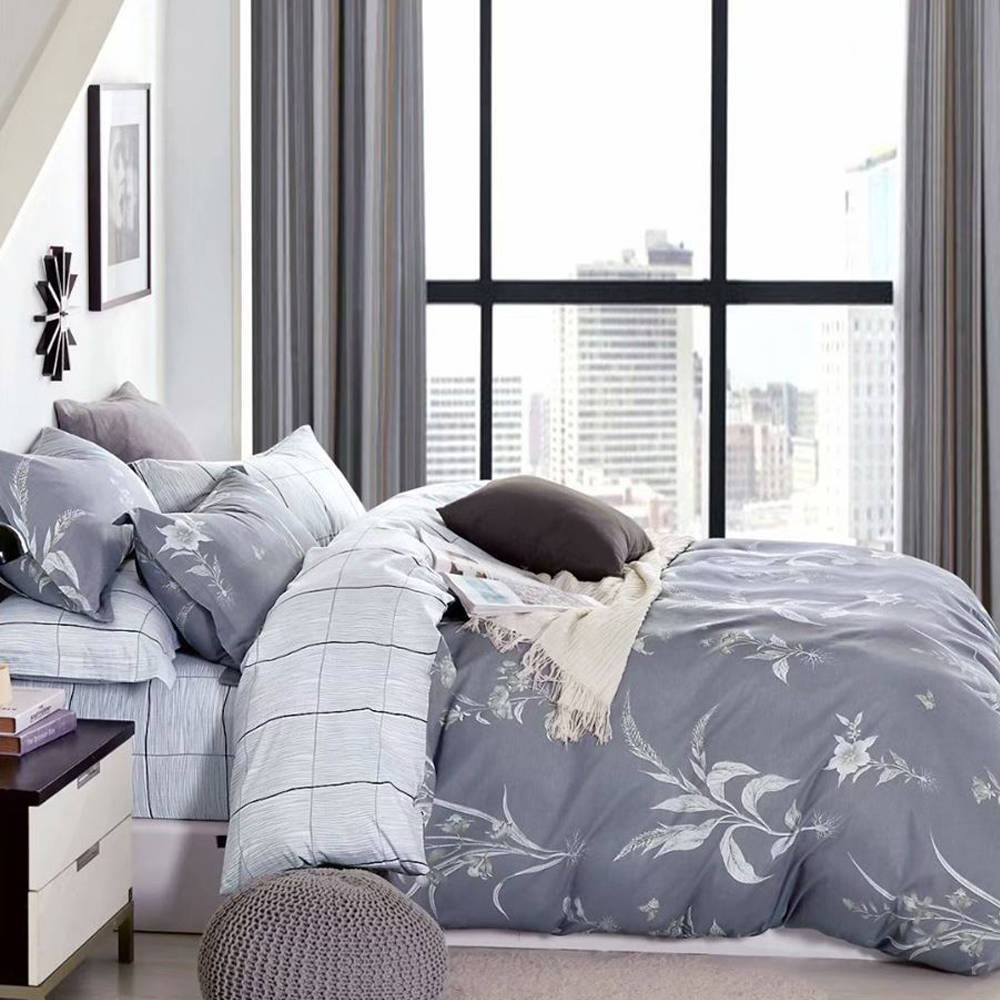 • Komplet pościeli bawełnianej 160x200 skład: 100% bawełna dwustronna kolorowa poszewka na kołdrę i 2 x poszewka na poduszkę 70x80, szara pościel z motywem liści, trawy