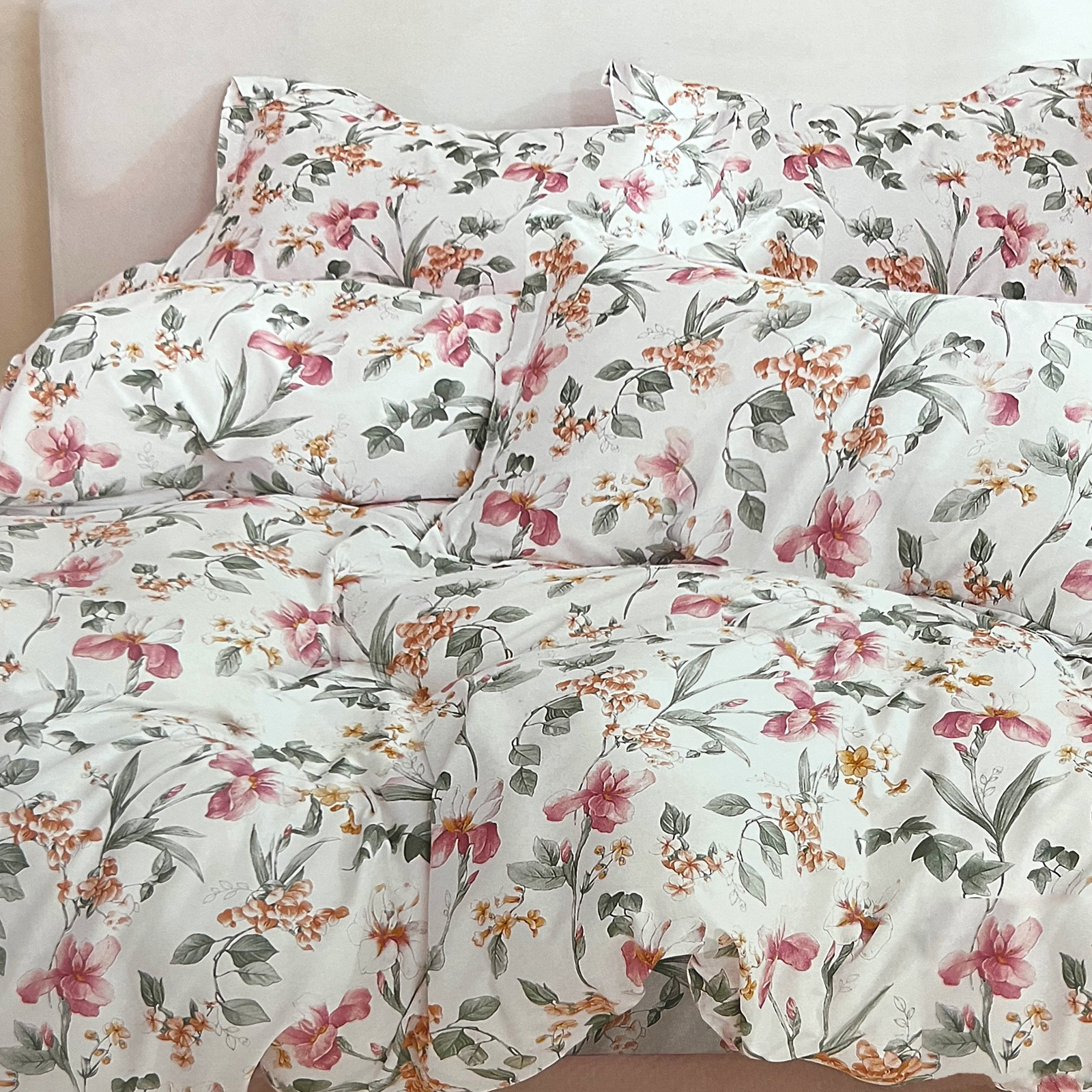 - Komplet naturalnej pościeli bawełnianej w kwiaty 160x200 skład: 100% bawełna dwustronna, poszewka na kołdrę i 2 x poszewka na poduszkę 70x80, biała, zielona, różowa