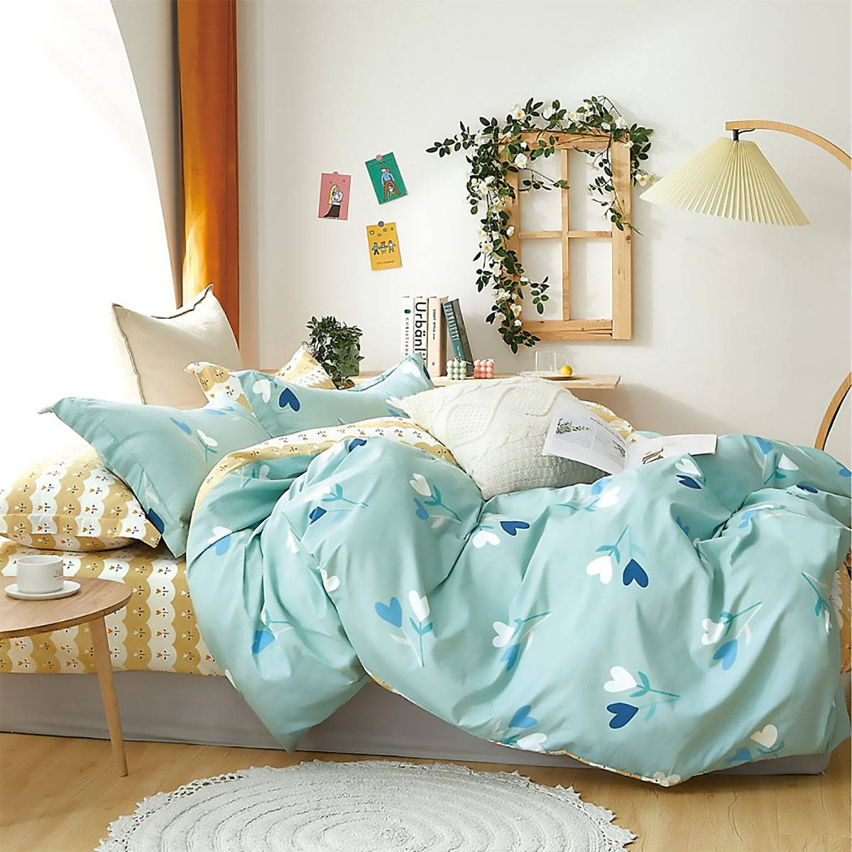 • Komplet pościeli bawełnianej 160x200 skład: 100% bawełna dwustronna w serca poszewka na kołdrę i 2 x poszewka na poduszkę 70x80 błękitna w serduszka
