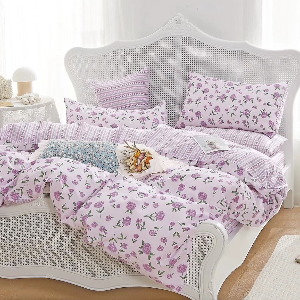 - Komplet pościeli fioletowej z delikatnymi kwiatami to romantyczny dodatek do każdej sypialni. Dzięki tej pościeli, sen staje się jeszcze bardziej przyjemny, a sypialnia nabiera wyjątkowego charakteru.
