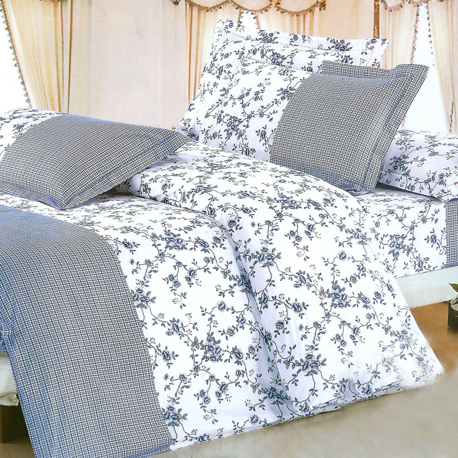 - Komplet pościeli bawełnianej w kwiaty160x200 skład: 100% bawełna dwustronna poszewka na kołdrę i 2 x poszewka na poduszkę 70x80 nowoczesna pościel w niebieskie kwiatki. Poszewki na poduszkę nie posiadają lamówki - mają jedynie wzór kwiatów.