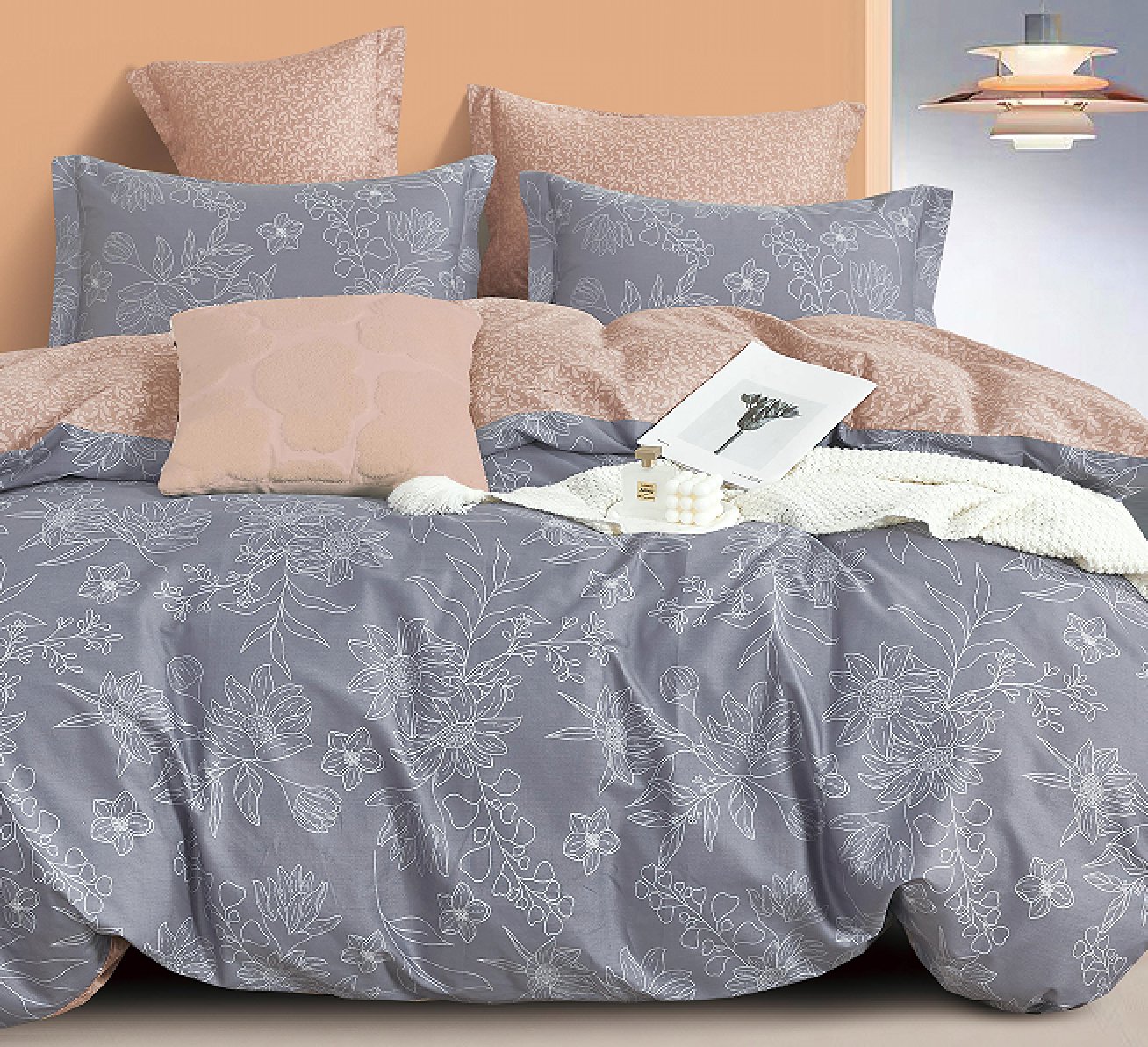 • Komplet naturalnej pościeli bawełnianej 160x200 skład: 100% bawełna dwustronna, poszewka na kołdrę i 2 x poszewka na poduszkę 70x80 szaro-beżowa pościel w kwiaty