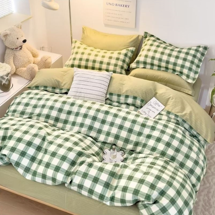 - Komplet pościeli zielonej w kratę to stylowy dodatek do każdej sypialni. Na drugiej stronie ma delikatny odcień szałwiowy. Dzięki tej pościeli, sen staje się jeszcze bardziej przyjemny, a sypialnia nabiera wyjątkowego charakteru.