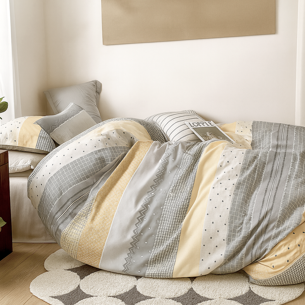 - Komplet pościeli szaro-beżowej w pasy to stylowy dodatek do każdej sypialni. Dzięki tej pościeli, sen staje się jeszcze bardziej przyjemny, a sypialnia nabiera wyjątkowego charakteru.