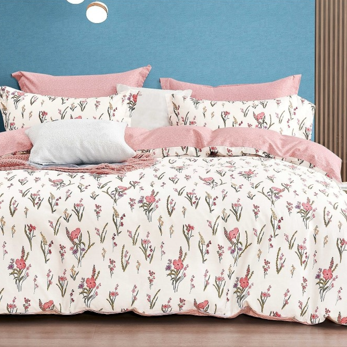 - Komplet naturalnej pościeli bawełnianej 160x200 skład: 100% bawełna dwustronna, poszewka na kołdrę i 2 x poszewka na poduszkę 70x80 biała, różowa w kwiaty