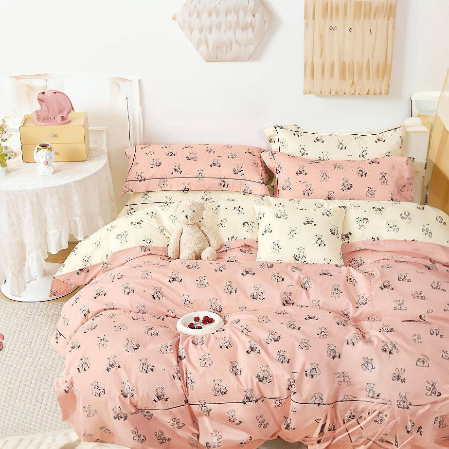 Pościel bawełniana 160x200 3 el. Pink Bear M1661