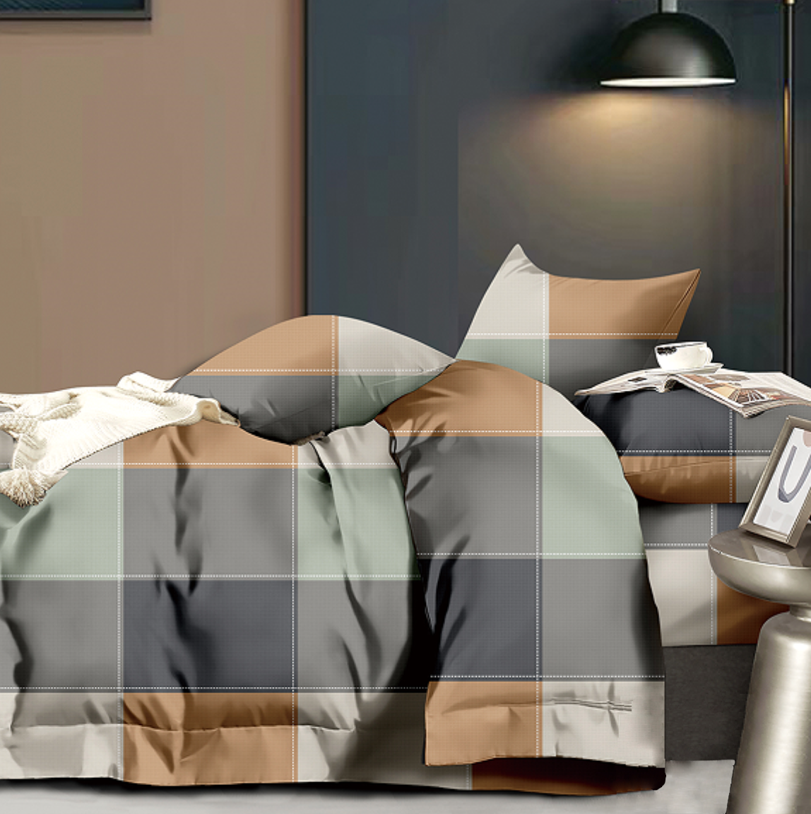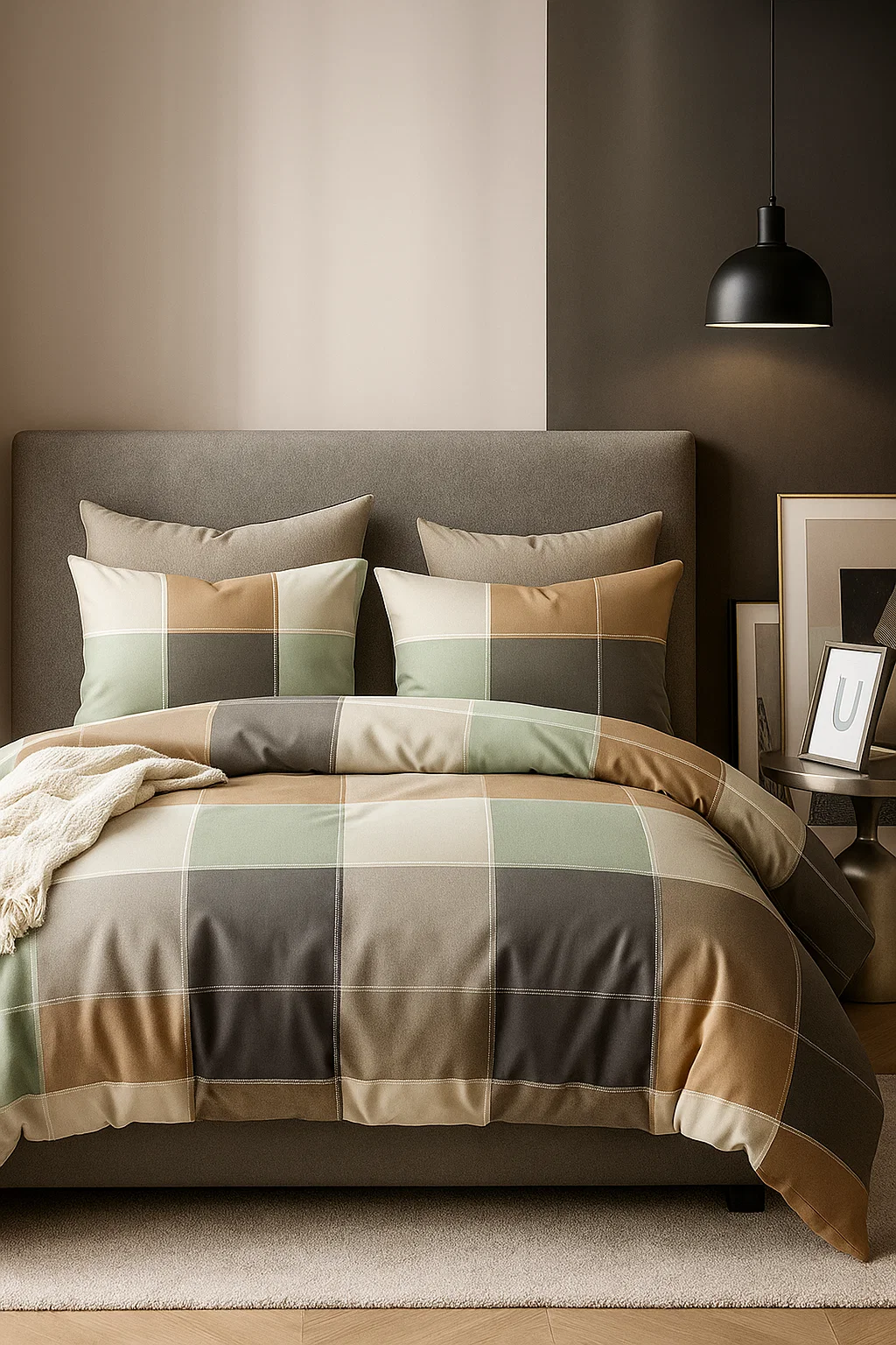 - Komplet naturalnej pościeli bawełnianej 160x200 skład: 100% bawełna dwustronna, poszewka na kołdrę i 2 x poszewka na poduszkę 70x80 pościel w kratę, beżowa, szara, zielona, brązowa
