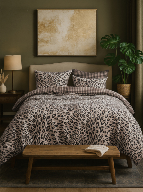 - Komplet pościeli bawełnianej w panterkę 160x200 skład: 100% bawełna dwustronna, poszewka na kołdrę i 2 x poszewka na poduszkę 70x80, brązowa, beżowa w zwierzęcy print
