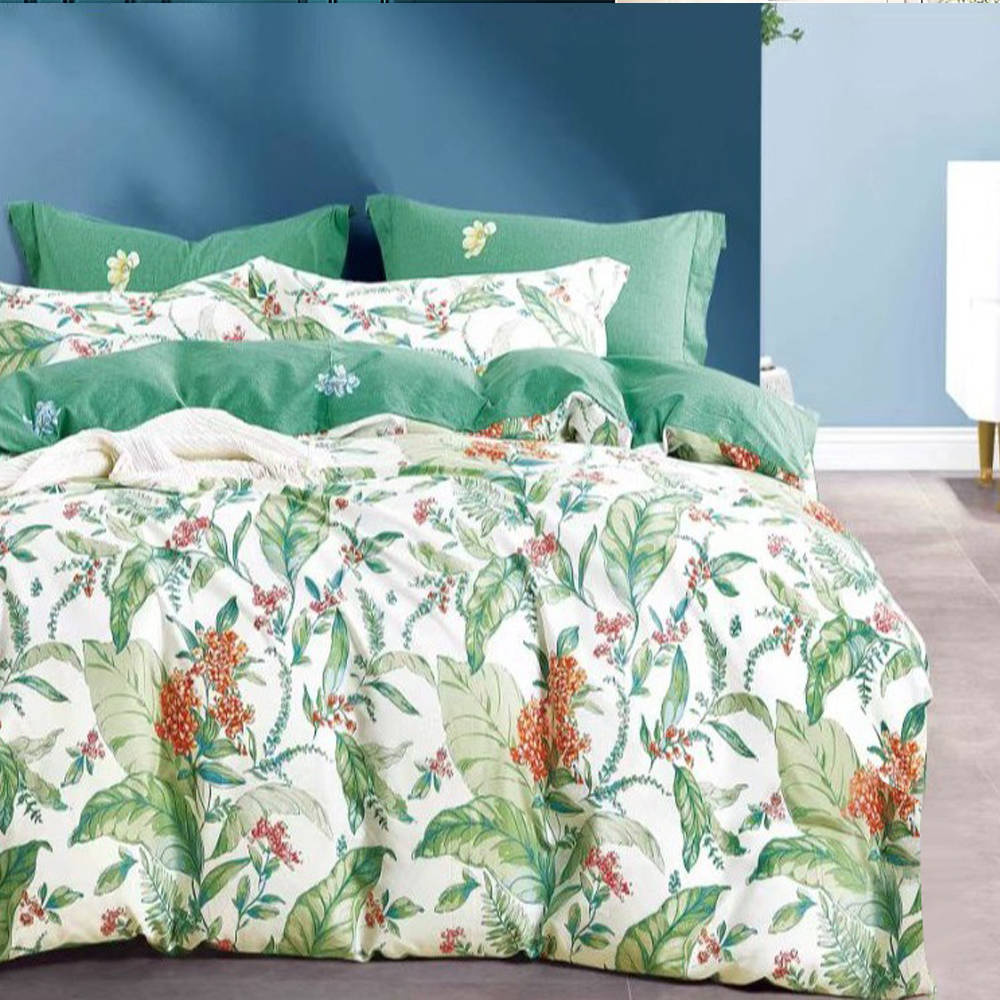 • Komplet naturalnej pościeli bawełnianej 160x200 skład: 100% bawełna dwustronna, poszewka na kołdrę i 2 x poszewka na poduszkę 70x80, zielono biała pościel w kwiaty i liście