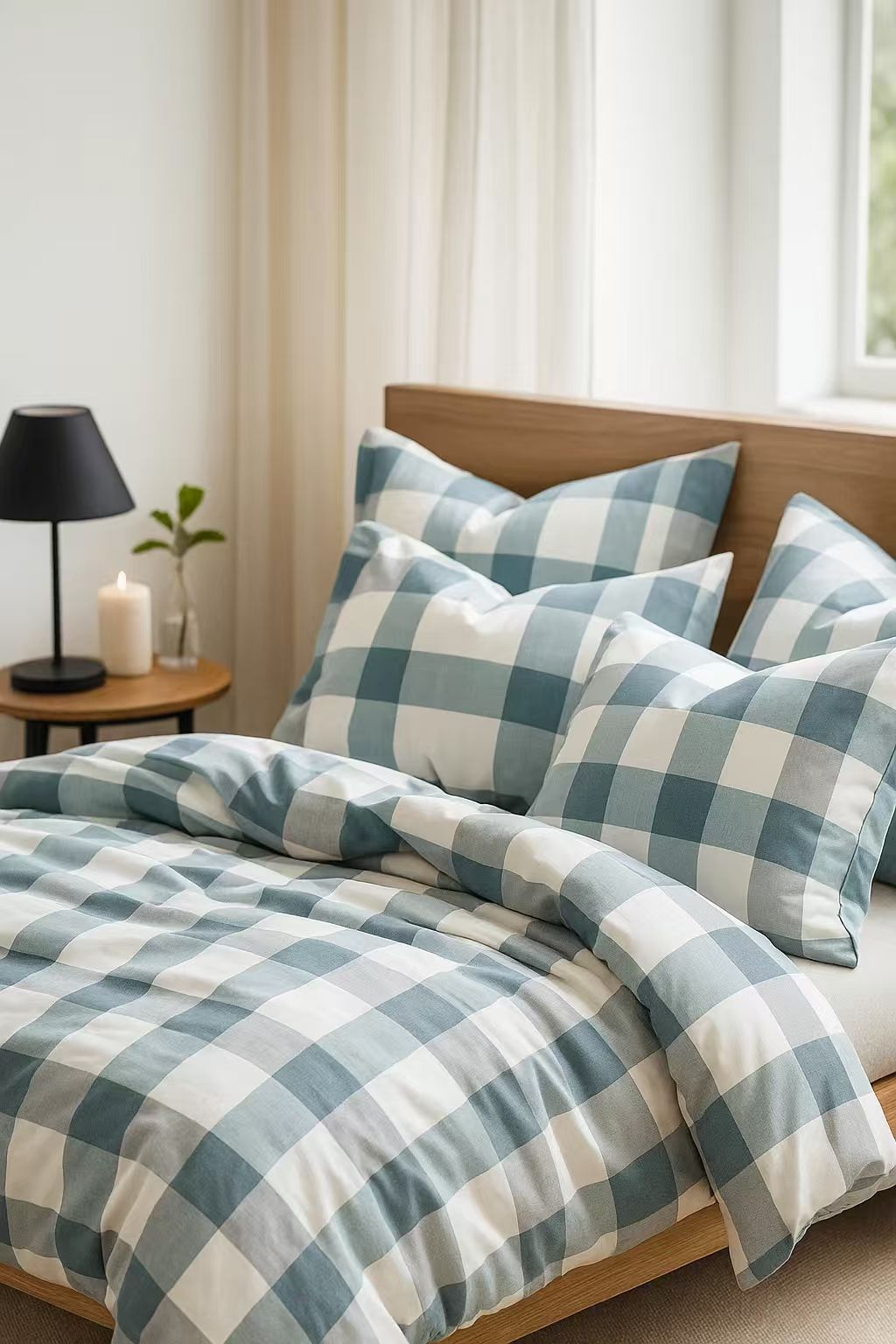 - Komplet naturalnej pościeli bawełnianej 160x200 skład: 100% bawełna dwustronna, poszewka na kołdrę i 2 x poszewka na poduszkę 70x80 pościel w kratę, biała, szara, błękitna