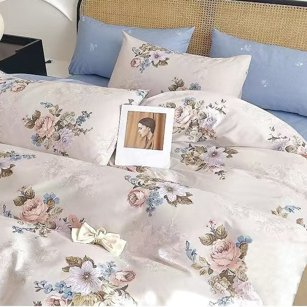 • Komplet naturalnej pościeli bawełnianej 180x200 skład: 100% bawełna dwustronna, poszewka na kołdrę i 2 x poszewka na poduszkę 70x80, szara, błękitna w kwiaty