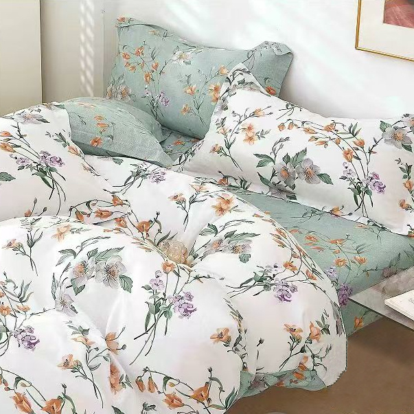 • Komplet naturalnej pościeli bawełnianej 180x200 skład: 100% bawełna dwustronna, poszewka na kołdrę i 2 x poszewka na poduszkę 70x80, biała, zielona w kwiaty