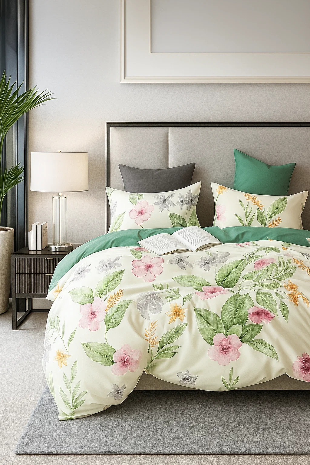• Komplet pościeli bawełnianej 180x200 skład: 100% bawełna dwustronna poszewka na kołdrę i 2 x poszewka na poduszkę 70x80 pościel w kwiaty