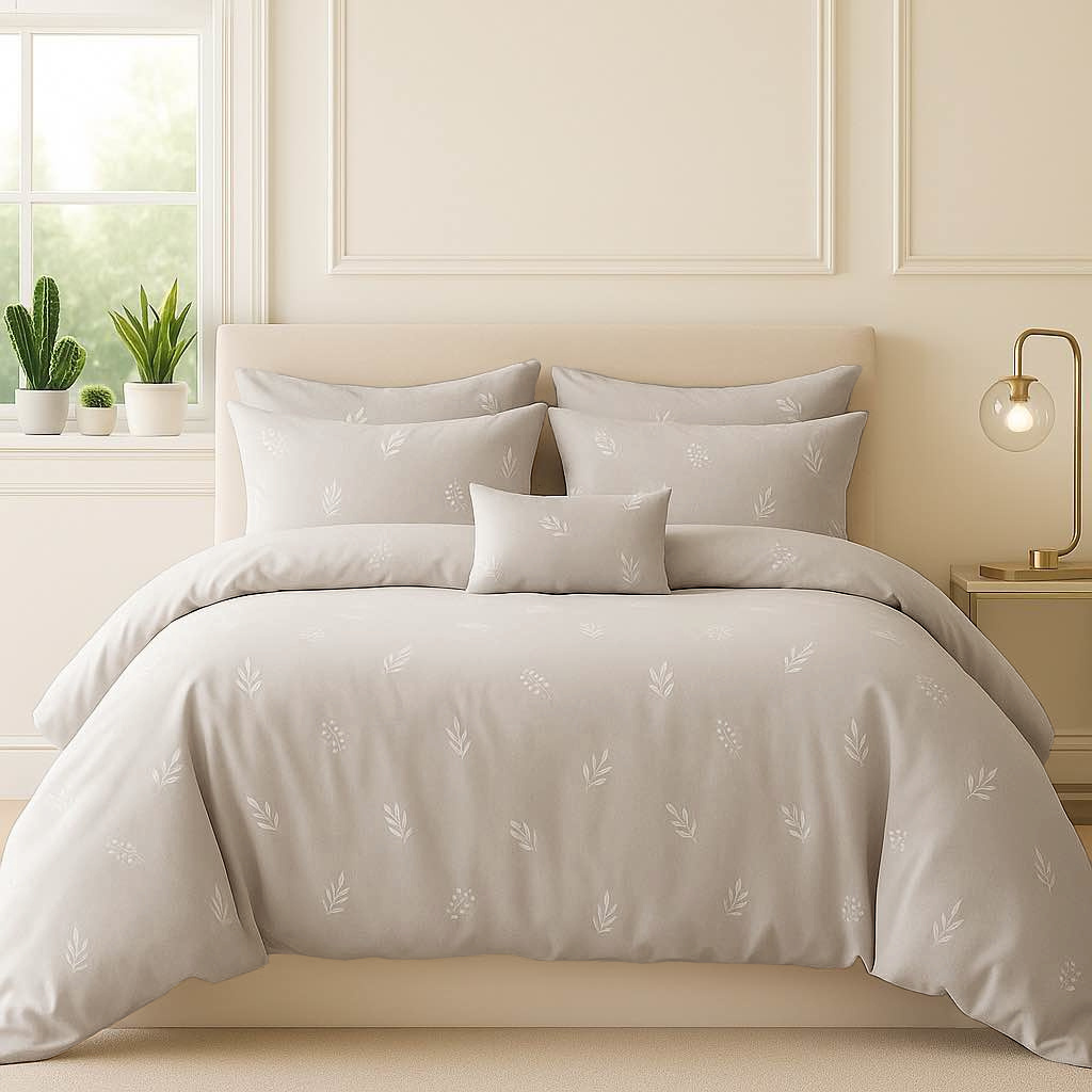 • Komplet naturalnej pościeli bawełnianej 180x200 skład: 100% bawełna dwustronna, poszewka na kołdrę i 2 x poszewka na poduszkę 70x80, beżowa w liście