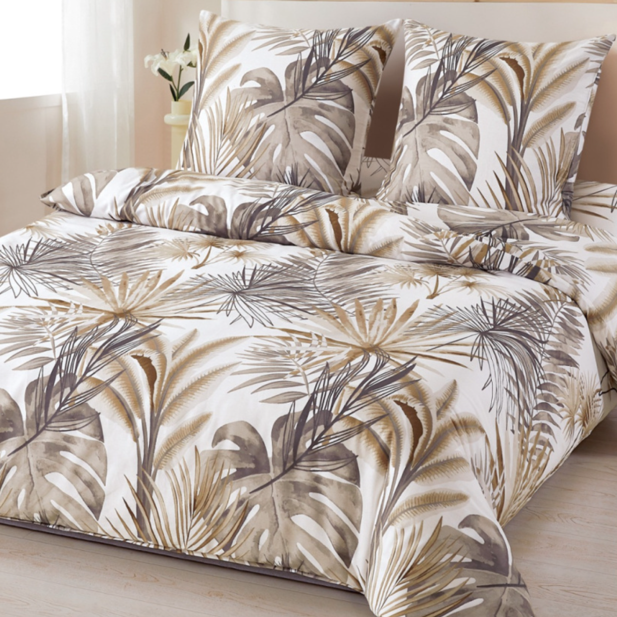• Komplet naturalnej pościeli bawełnianej w liście 180x200 skład: 100% bawełna dwustronna, poszewka na kołdrę i 2 x poszewka na poduszkę 70x80, jasna szara, beżowa