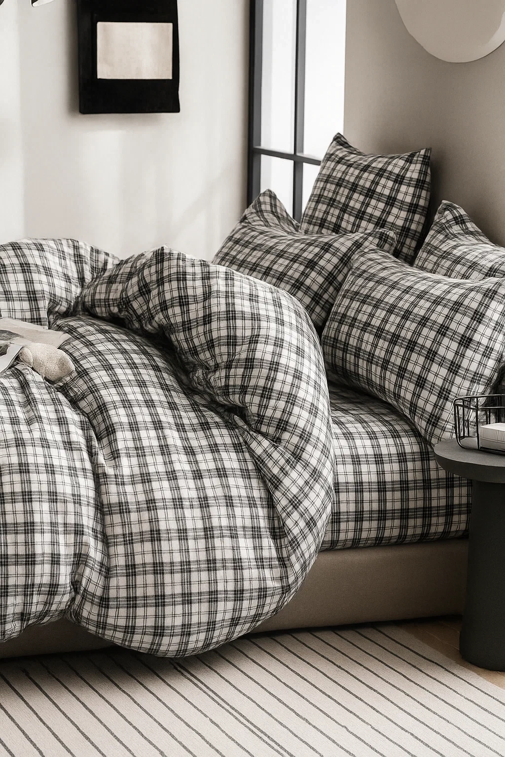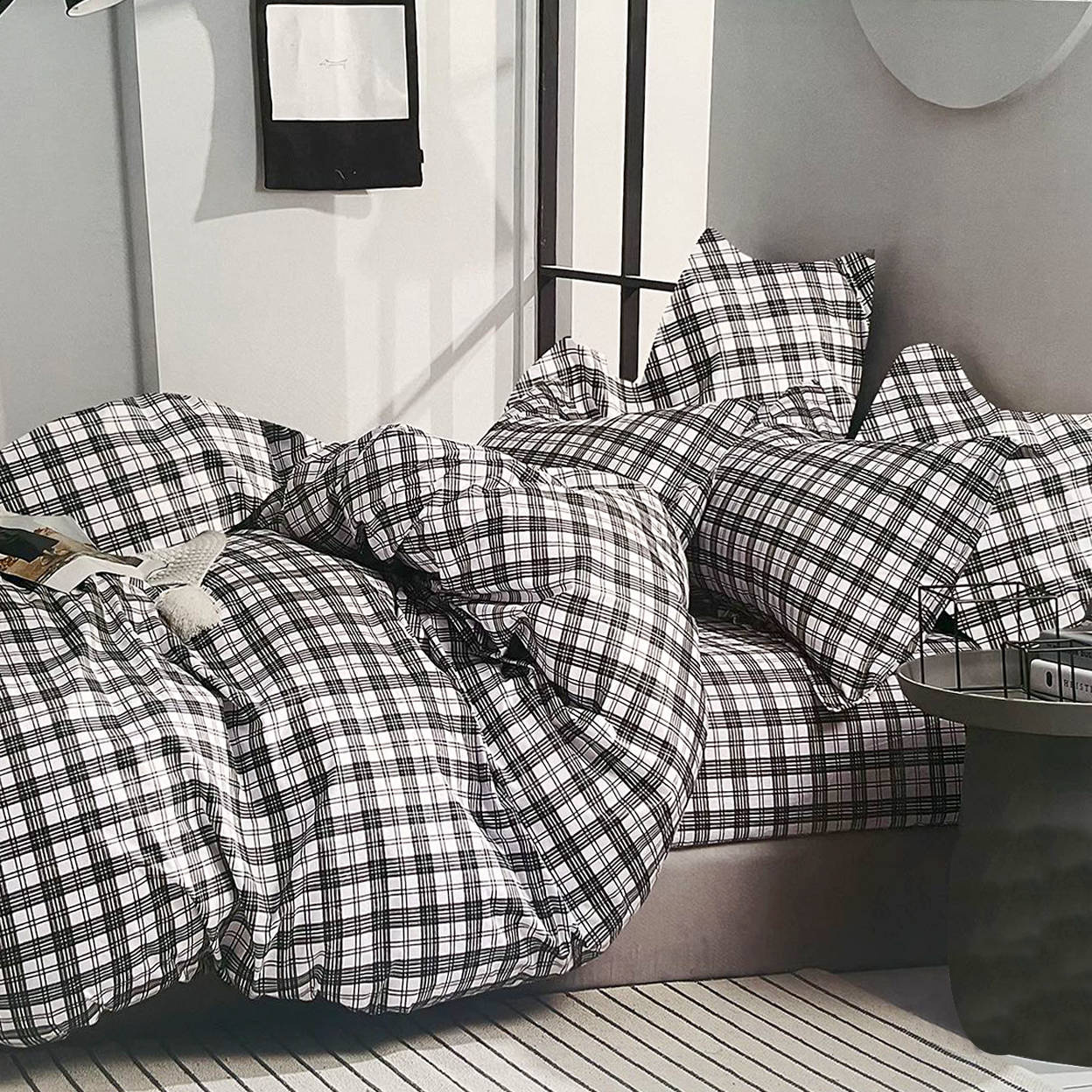 • Komplet pościeli bawełnianej 180x200 skład: 100% bawełna dwustronna poszewka na kołdrę i 2 x poszewka na poduszkę 70x80 szara w kratkę, poszewka na kołdrę i 2 x poszewka na poduszkę 70x80
