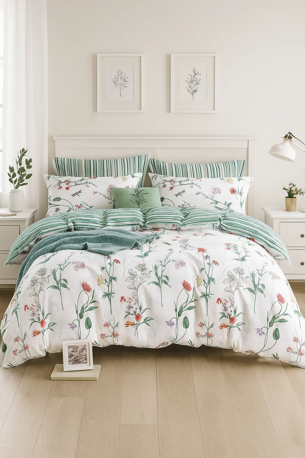 - Komplet pościeli bawełnianej 180x200 skład: 100% bawełna dwustronna poszewka na kołdrę i 2 x poszewka na poduszkę 70x80 biała pościel w kwiaty