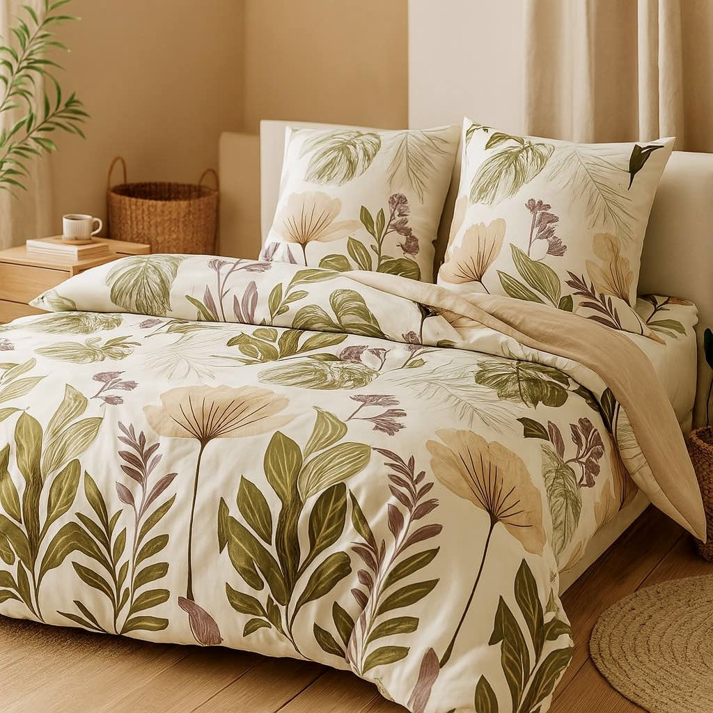 • Komplet naturalnej pościeli bawełnianej 180x200 skład: 100% bawełna dwustronna, poszewka na kołdrę i 2 x poszewka na poduszkę 70x80, kremowa, beżowa w kwiaty