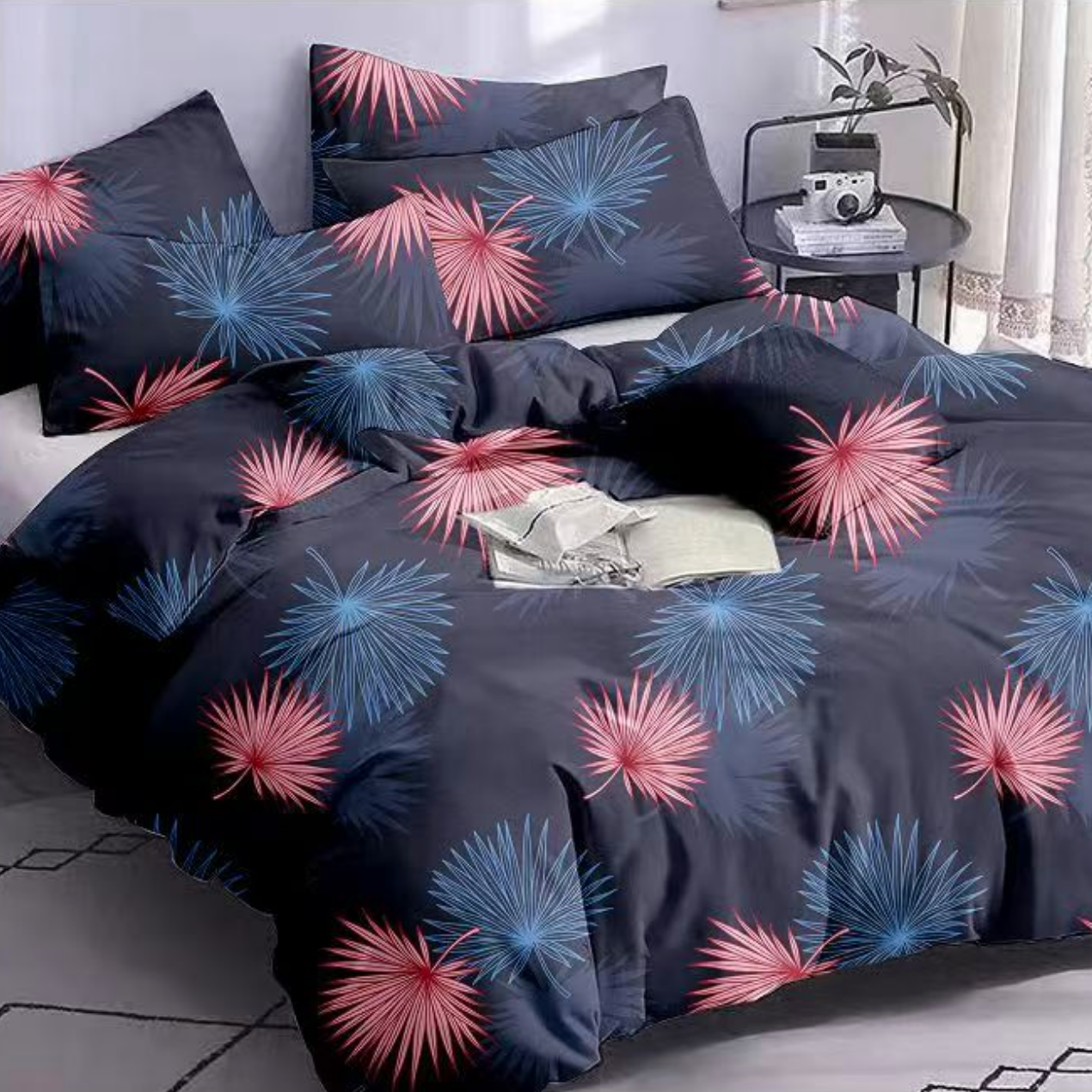 - Komplet naturalnej pościeli bawełnianej 180x200 skład: 100% bawełna dwustronna, poszewka na kołdrę i 2 x poszewka na poduszkę 70x80, czarna, niebieska, różowa w liście