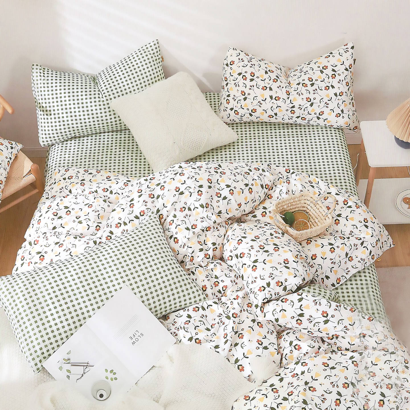 - Komplet pościeli bawełnianej 180x200 skład: 100% bawełna dwustronna poszewka na kołdrę i 2 x poszewka na poduszkę 70x80 w kwiaty, kwiatki, biało zielona