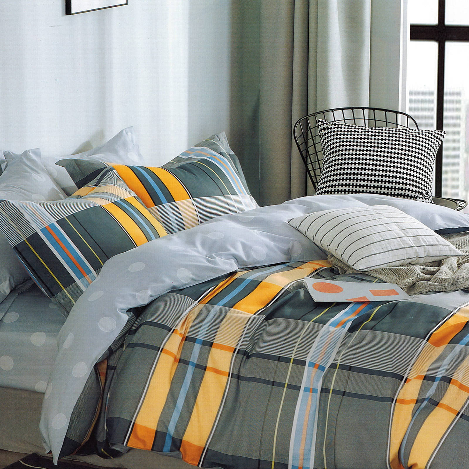 - Komplet naturalnej pościeli bawełnianej 180x200 skład: 100% bawełna dwustronna, poszewka na kołdrę i 2 x poszewka na poduszkę 70x80, ciemna szara w pasy