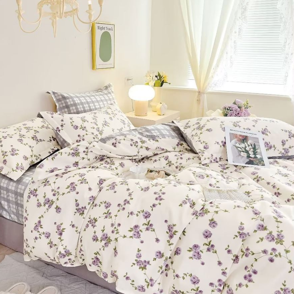- Komplet pościeli w kwiaty to romantyczny dodatek do każdej sypialni. Na drugiej stronie ma delikatny odcień fioletu. Dzięki tej pościeli, sen staje się jeszcze bardziej przyjemny, a sypialnia nabiera wyjątkowego charakteru.