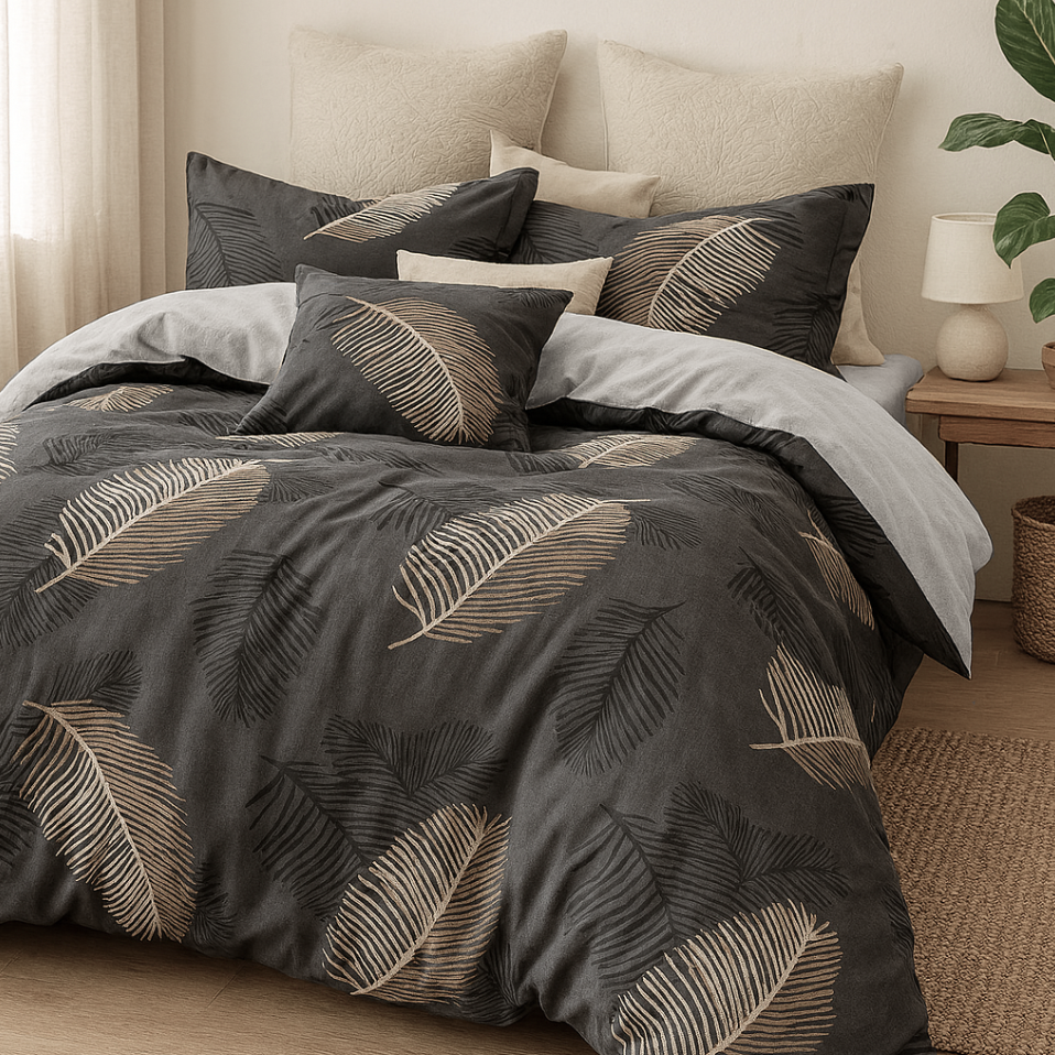 - Komplet naturalnej pościeli bawełnianej 180x200 skład: 100% bawełna dwustronna, poszewka na kołdrę i 2 x poszewka na poduszkę 70x80, ciemna szara, jasna szara w piórka
