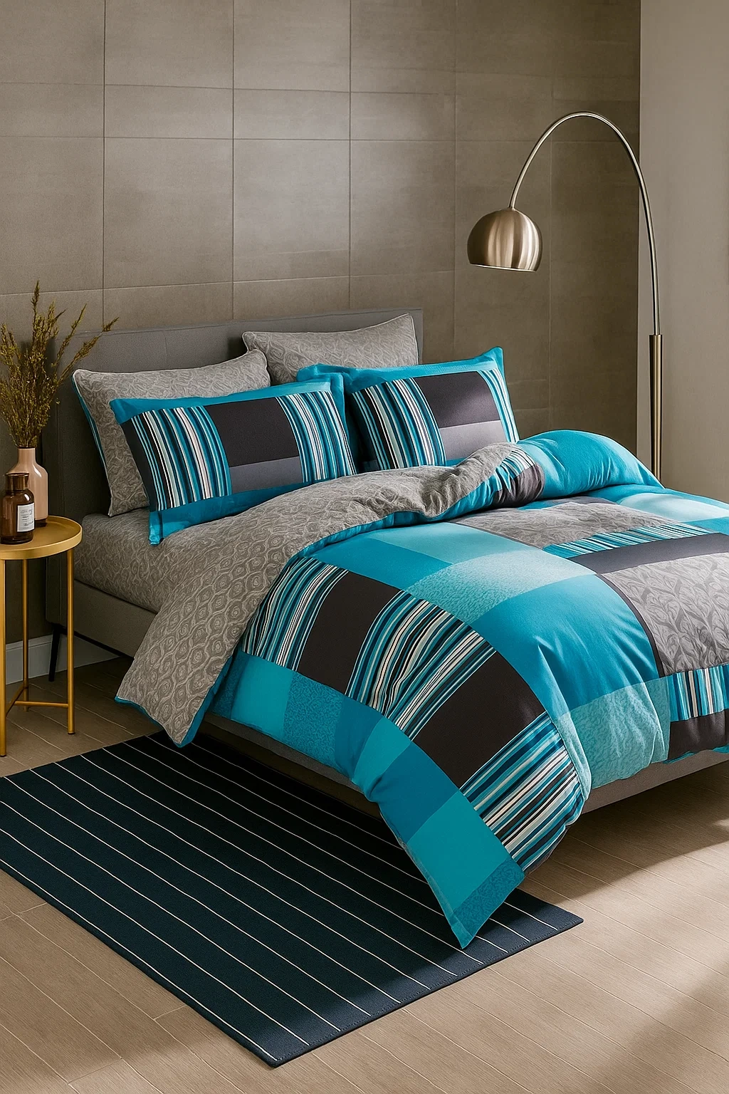 • Komplet pościeli bawełnianej 180x200 skład: 100% bawełna dwustronna poszewka na kołdrę i 2 x poszewka na poduszkę 70x80 pościel w geometryczne wzory