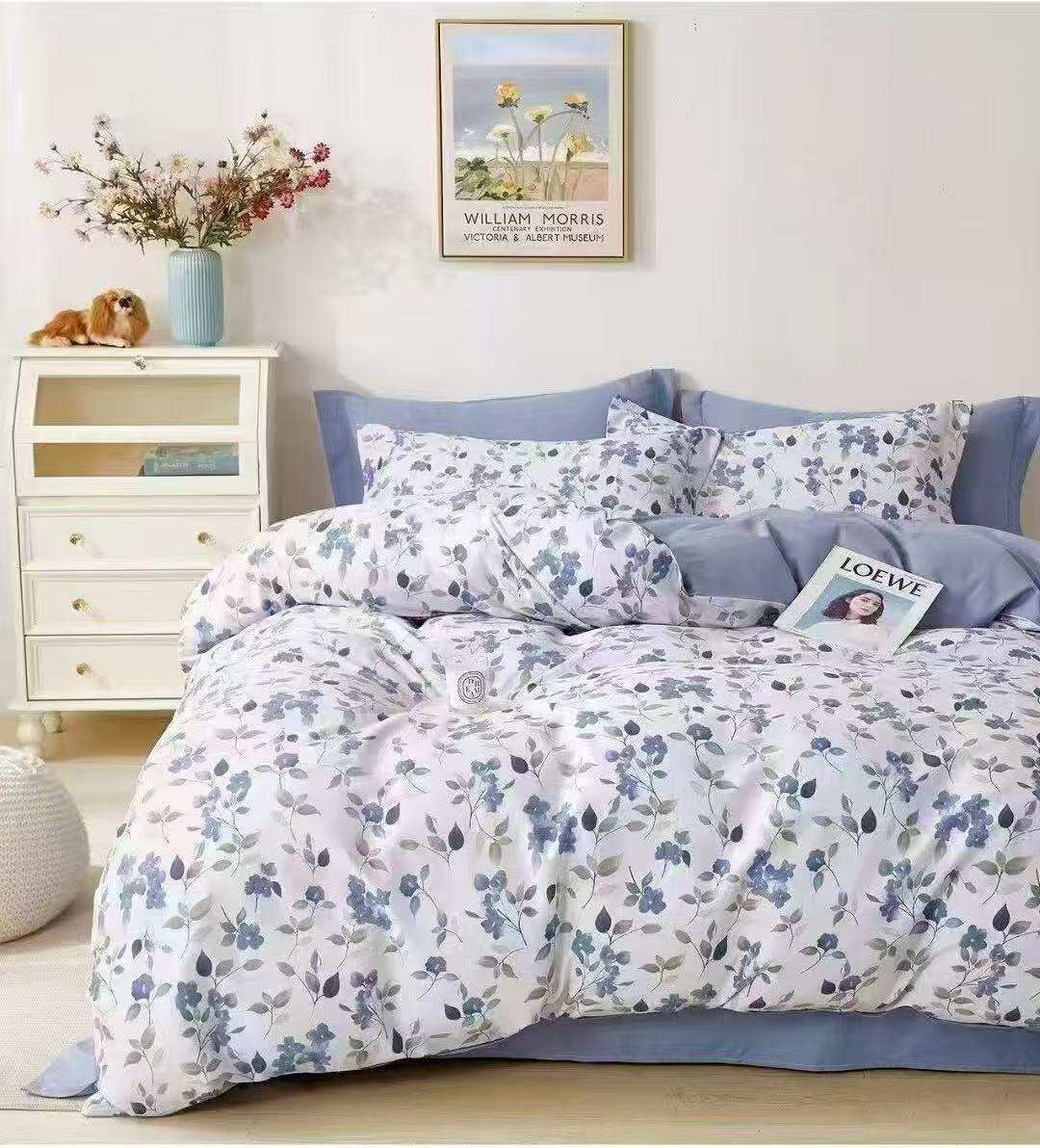 - Komplet pościeli bawełnianej 200x220, skład: 100% bawełna dwustronna kolorowa poszewka na kołdrę i 2 x poszewka na poduszkę 70x80, pościel w kwiaty, błękitna