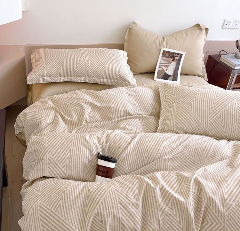- Komplet pościeli bawełnianej 200x220, skład: 100% bawełna dwustronna kolorowa poszewka na kołdrę i 2 x poszewka na poduszkę 70x80, pościel w geometryczny wzór, beżowa