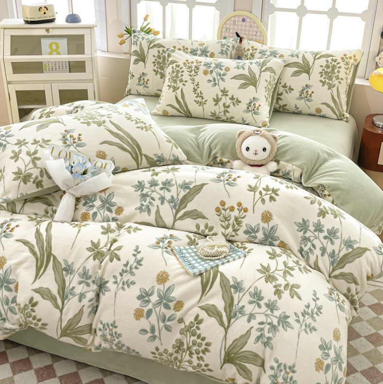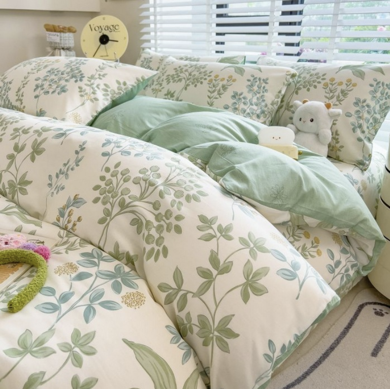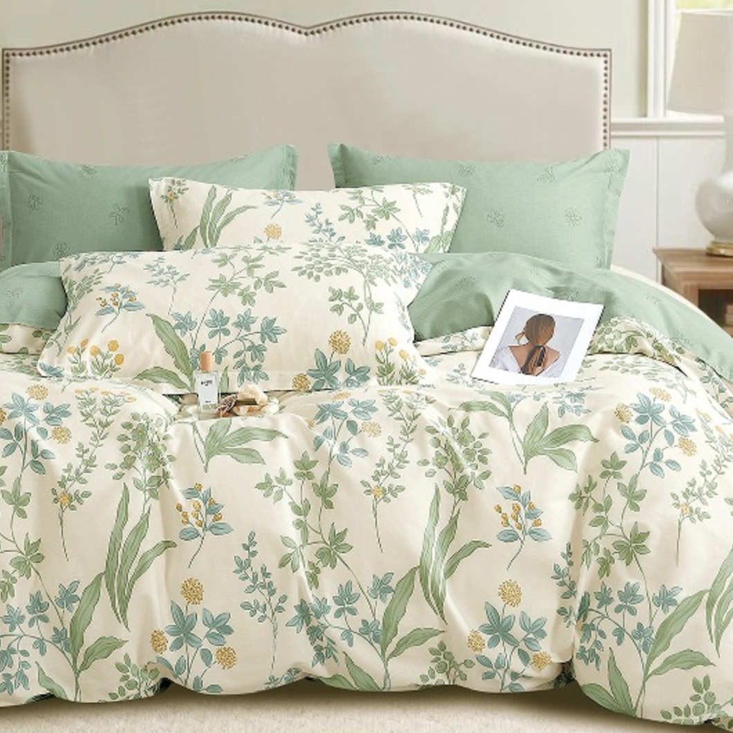- Komplet naturalnej pościeli bawełnianej 200x220 skład: 100% bawełna dwustronna, poszewka na kołdrę i 2 x poszewka na poduszkę 70x80 pościel w kwiaty, zielona