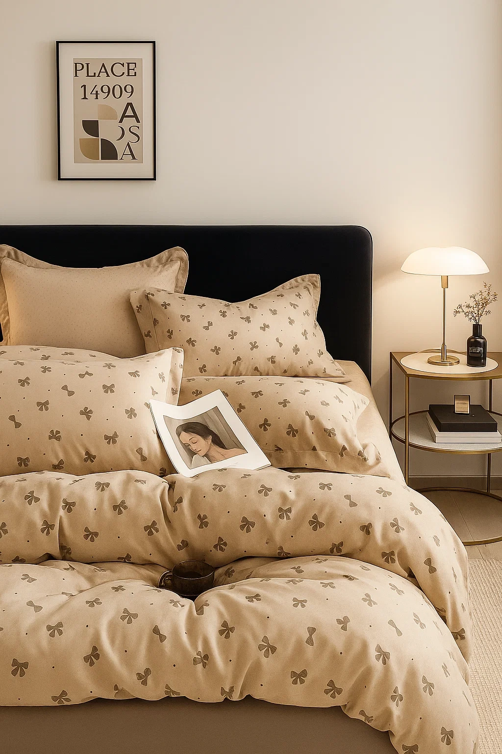 - Komplet pościeli bawełnianej 200x220, skład: 100% bawełna dwustronna kolorowa poszewka na kołdrę i 2 x poszewka na poduszkę 70x80, pościel w kokardki, beżowa, brązowa
