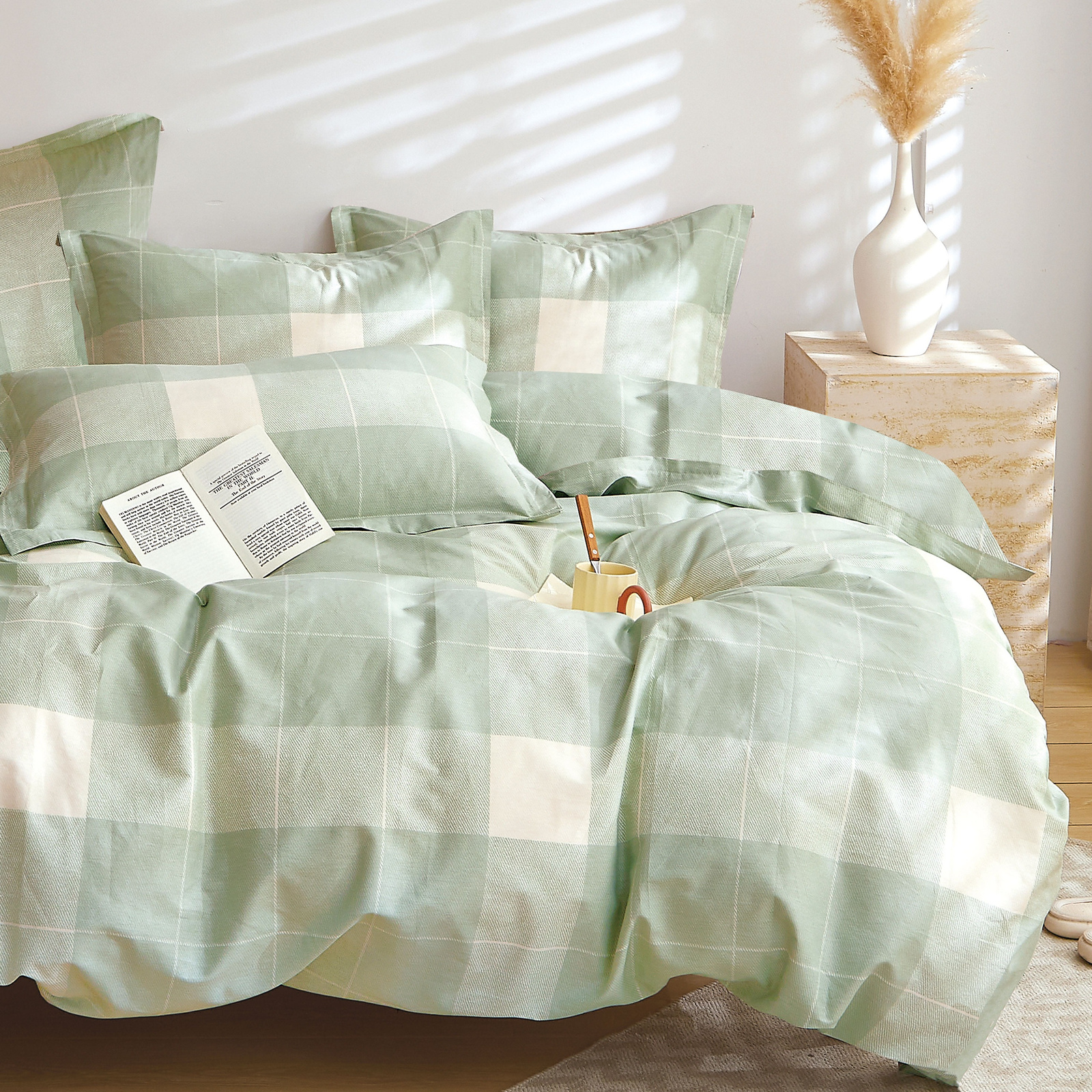 - Komplet pościeli bawełnianej 200x220, skład: 100% bawełna dwustronna kolorowa poszewka na kołdrę i 2 x poszewka na poduszkę 70x80, pościel w kratę, zielona, kremowa