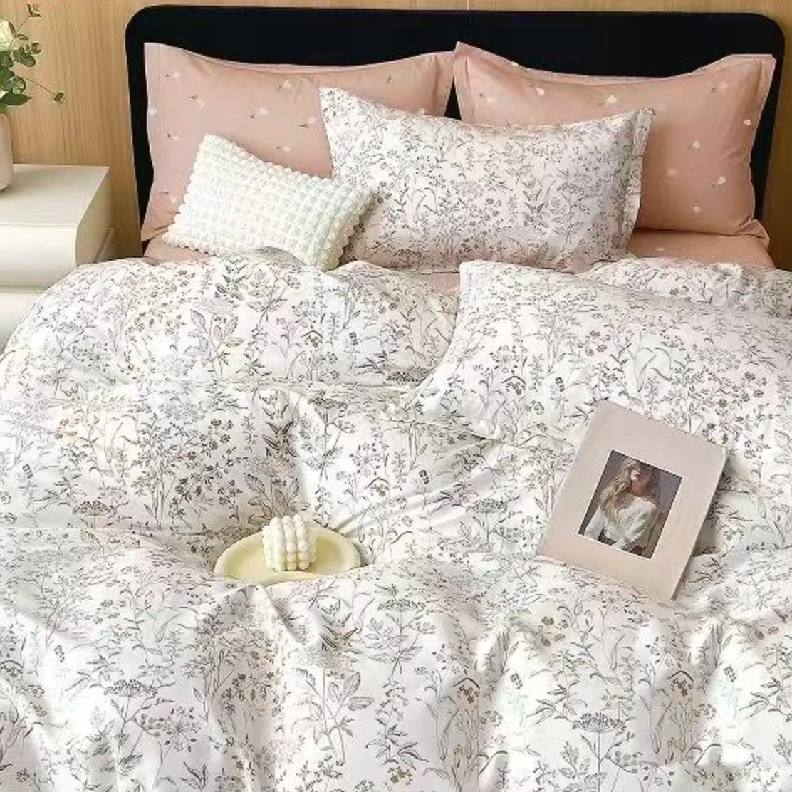 - Komplet naturalnej pościeli bawełnianej w kwiaty 200x220 skład: 100% bawełna dwustronna, poszewka na kołdrę i 2 x poszewka na poduszkę 70x80, beżowa, różowa