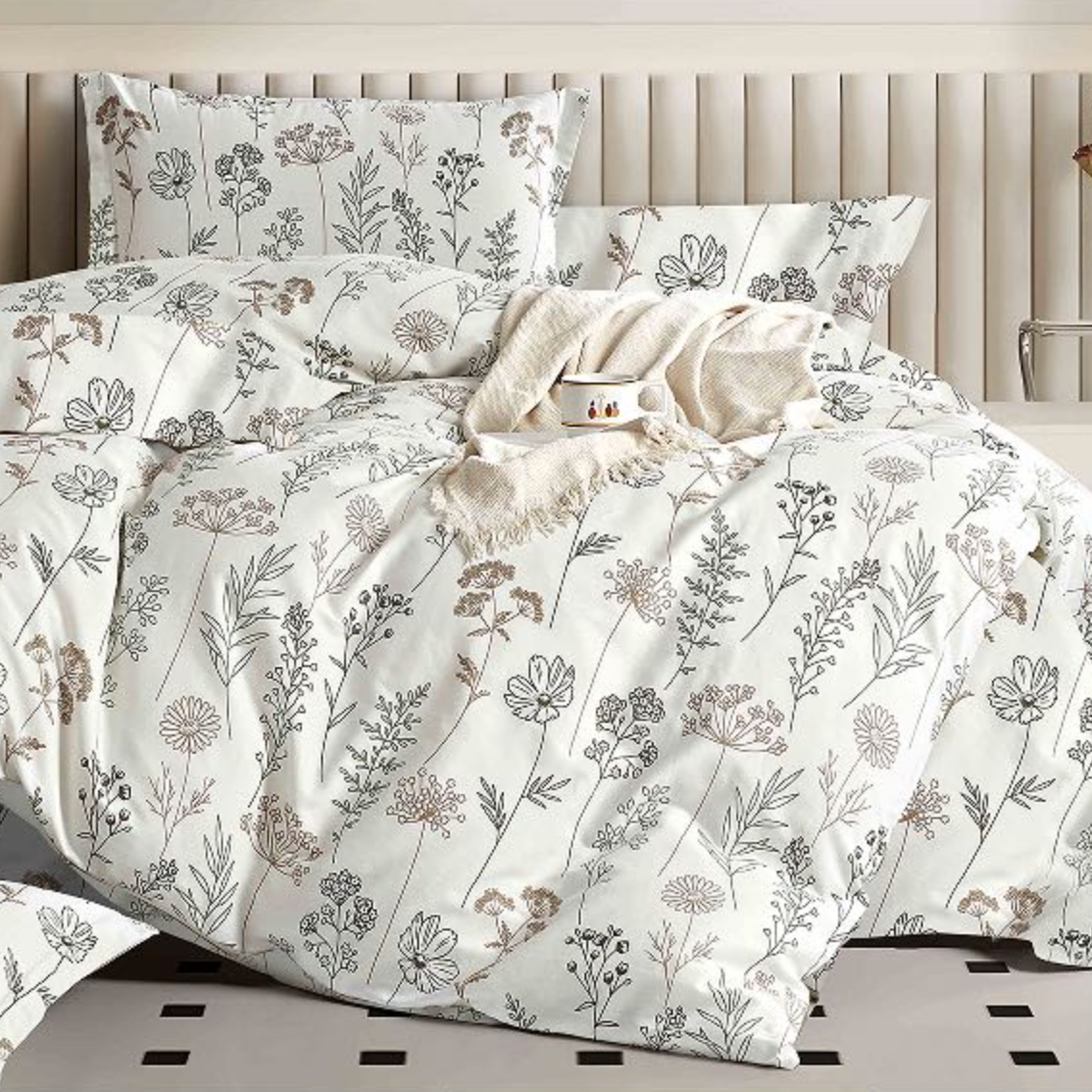 - Komplet naturalnej pościeli bawełnianej w liście 200x220 skład: 100% bawełna dwustronna, poszewka na kołdrę i 2 x poszewka na poduszkę 70x80, jasna szara