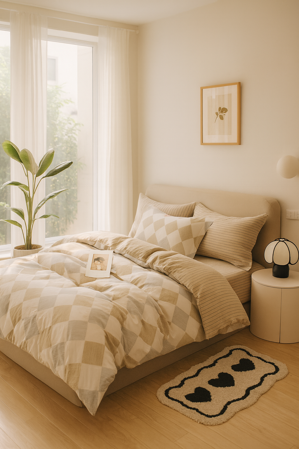 - Miękka, 100% bawełniana pościel z dwustronnym nadrukiem i zamkiem błyskawicznym. Oddychająca, przyjazna dla skóry, idealna na każdą porę roku. Pościel w odcieniach beżu w geometryczne wzory.