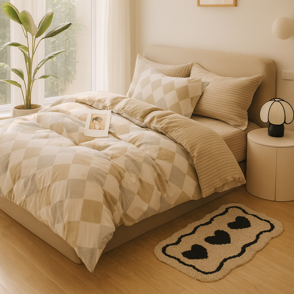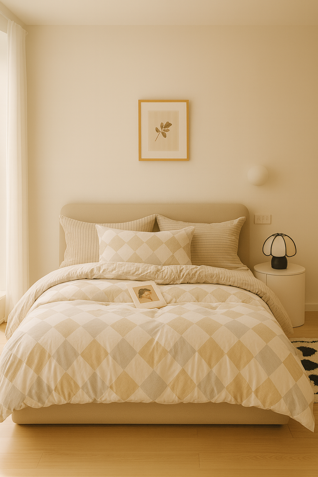 Pościel bawełniana beżowa w romby 200x220 3 el. L20
