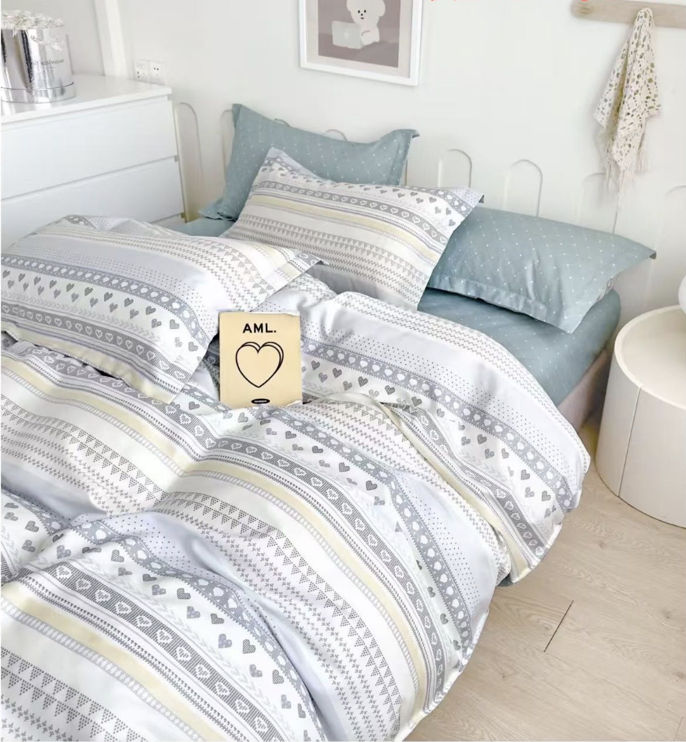 Pościel bawełniana jasna w serca i drobne wzory 200x220 3 el. L26