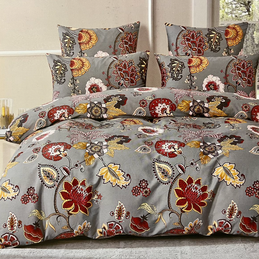 Pościel bawełniana szara w kwiaty 160x200 3 el. Lina M1695