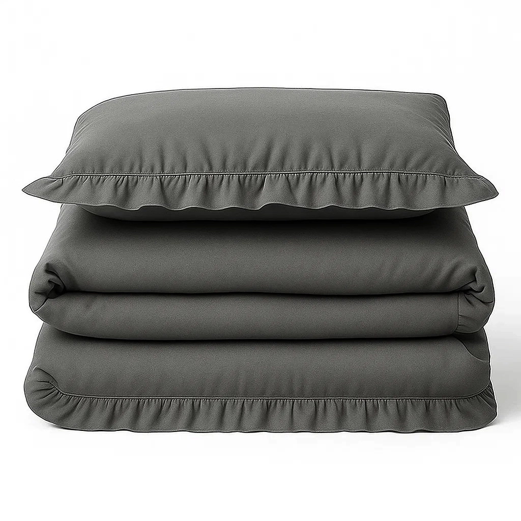 Pościel bawełniana z falbanką szara 200x220 3 el.