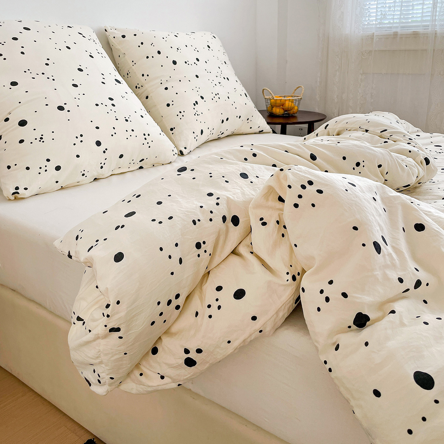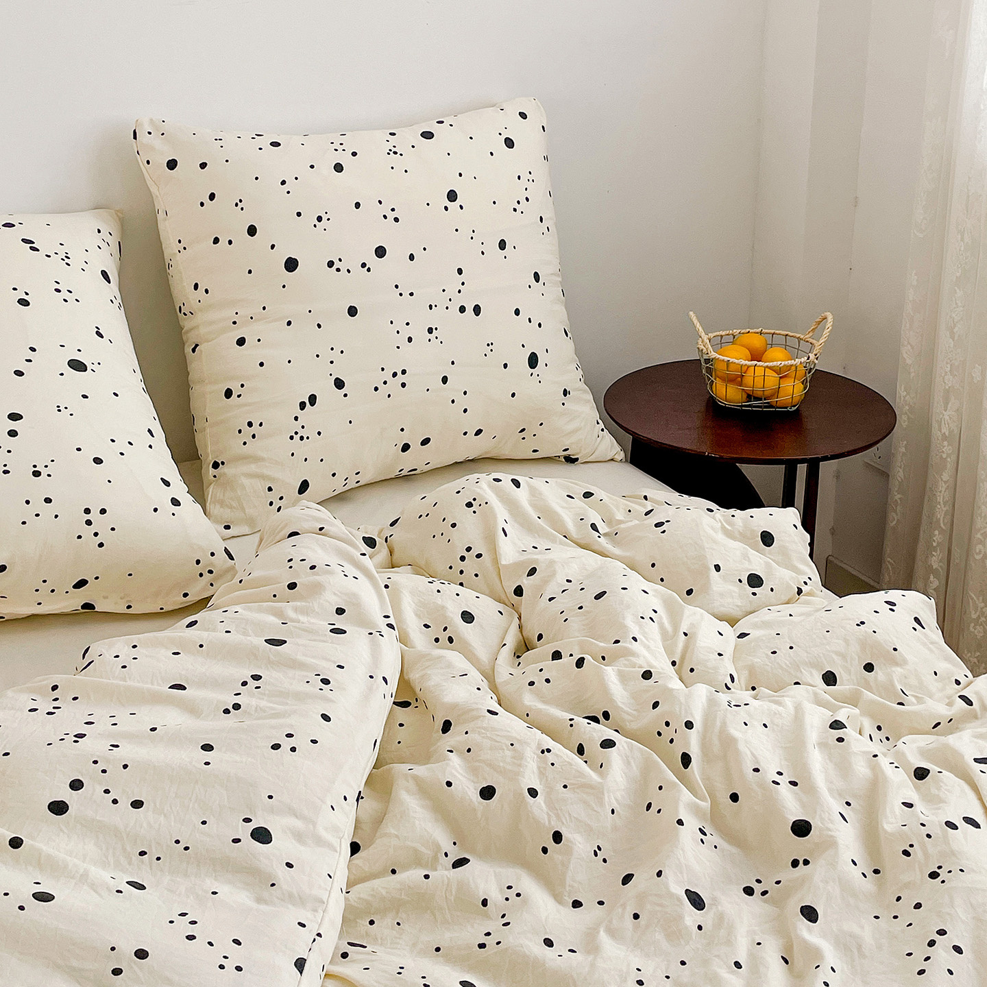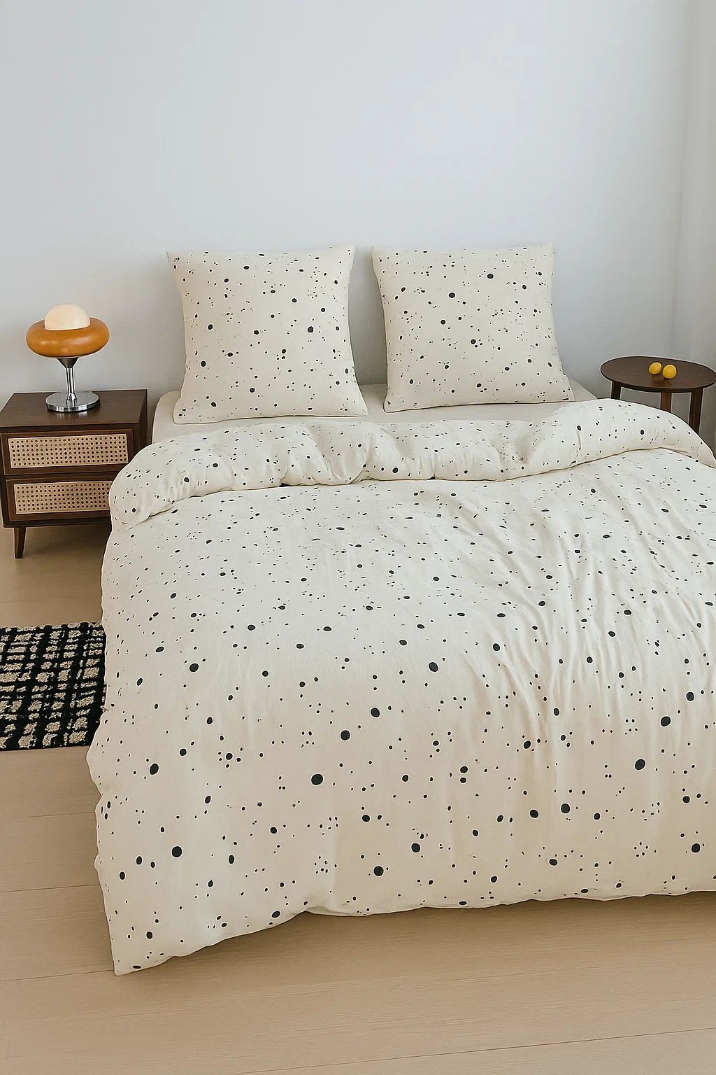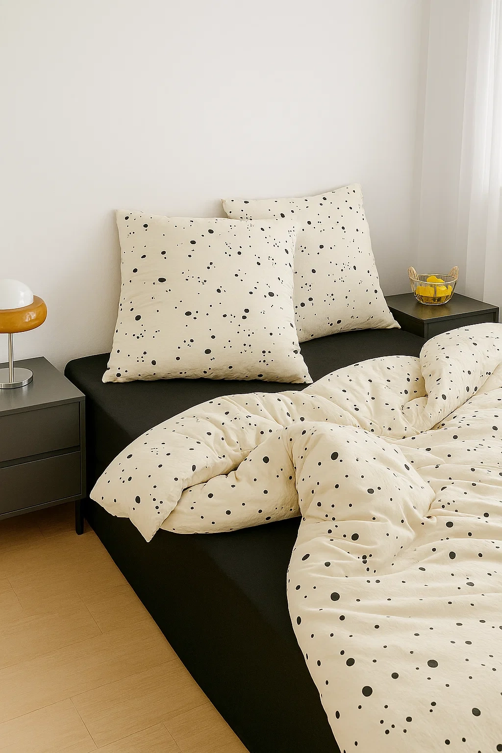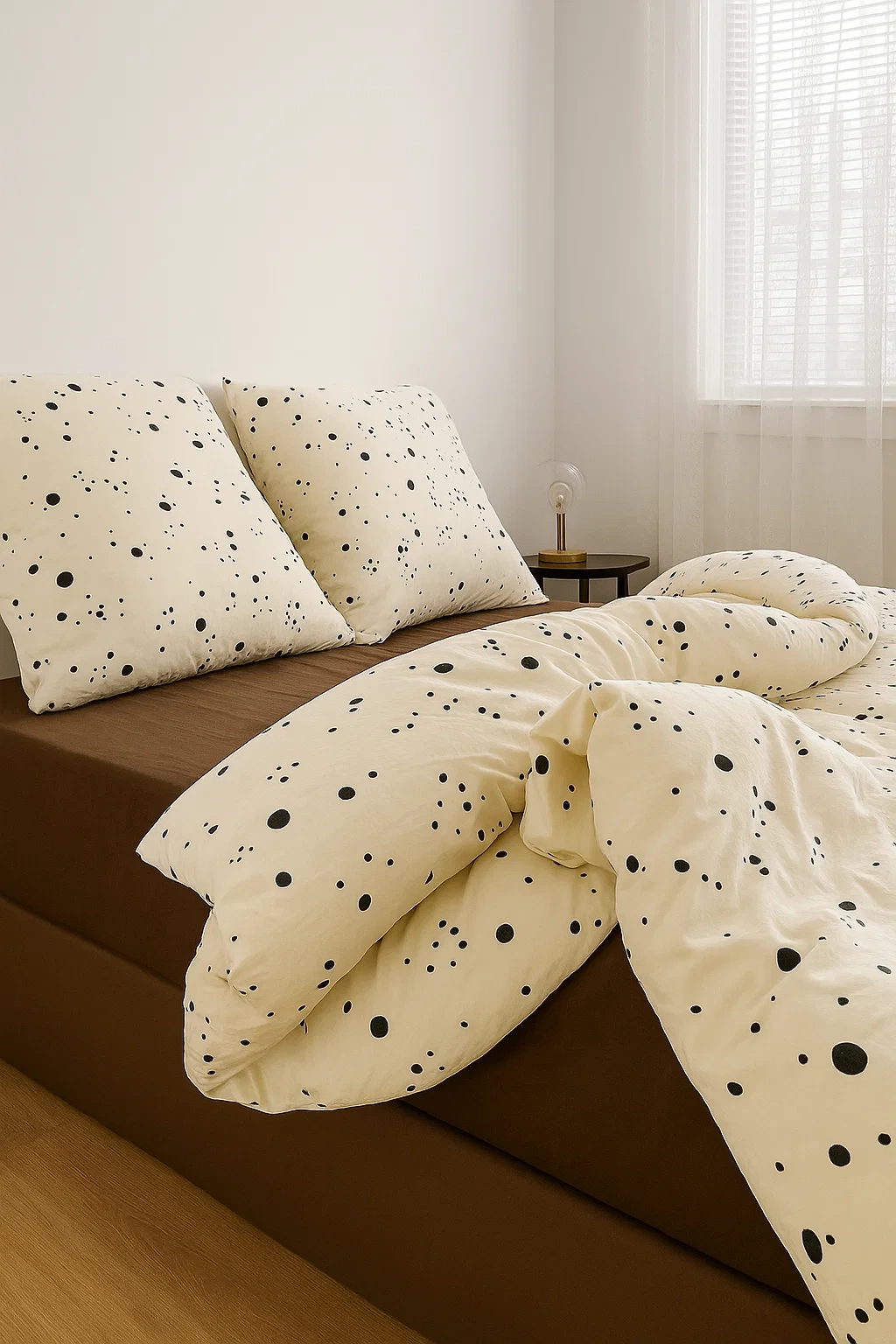 Pościel w czarne kropki na jasnym tle – miękka, nowoczesna i idealna do każdego wnętrza