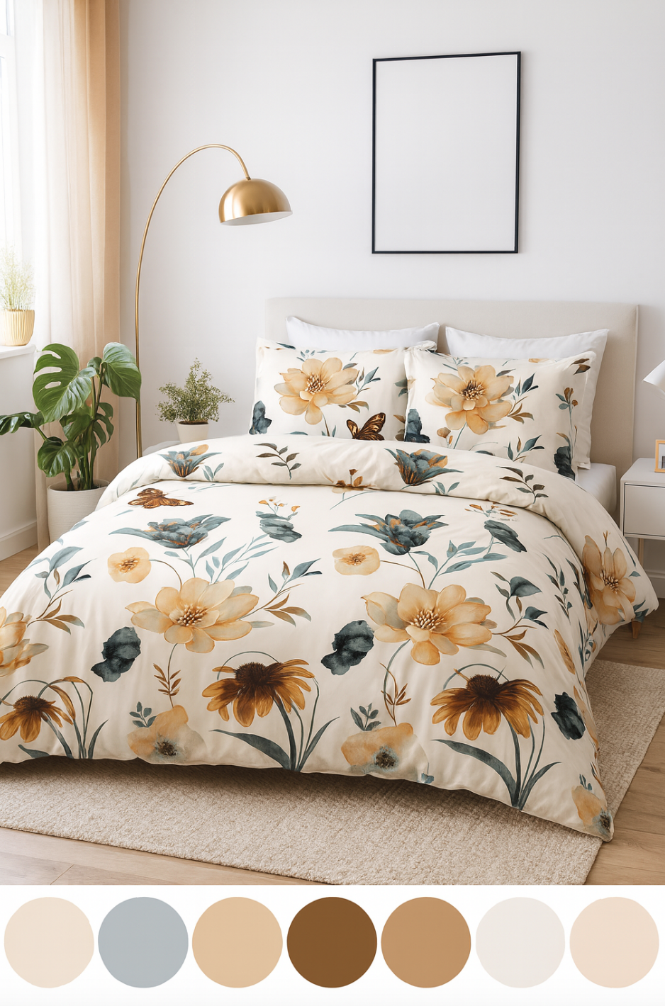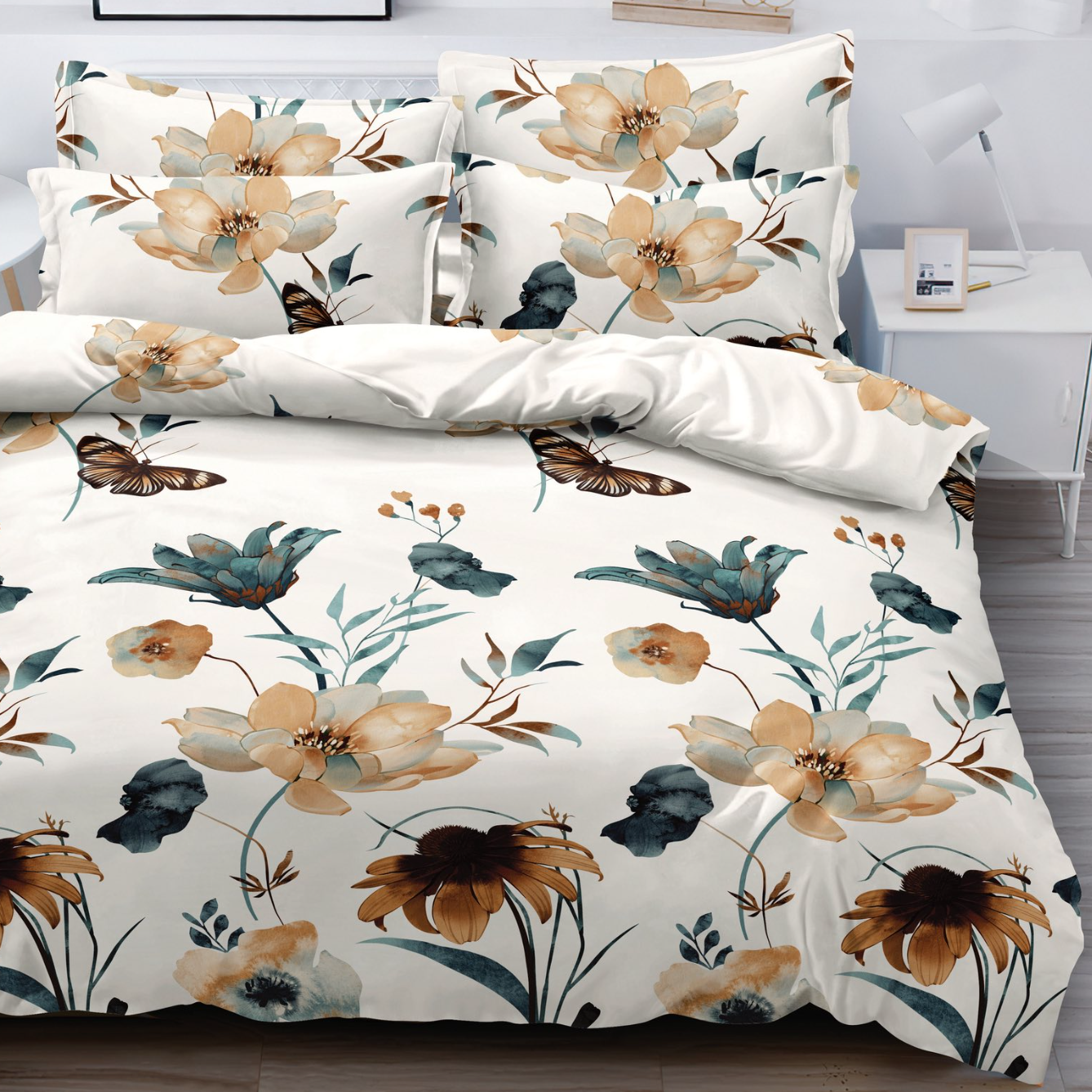 - Komplet białej pościeli 160x200 skład: 100% mikrowłókno dwustronna poszewka na kołdrę i 2 x poszewka na poduszkę 70x80, pościel w kwiaty, biała, beżowa