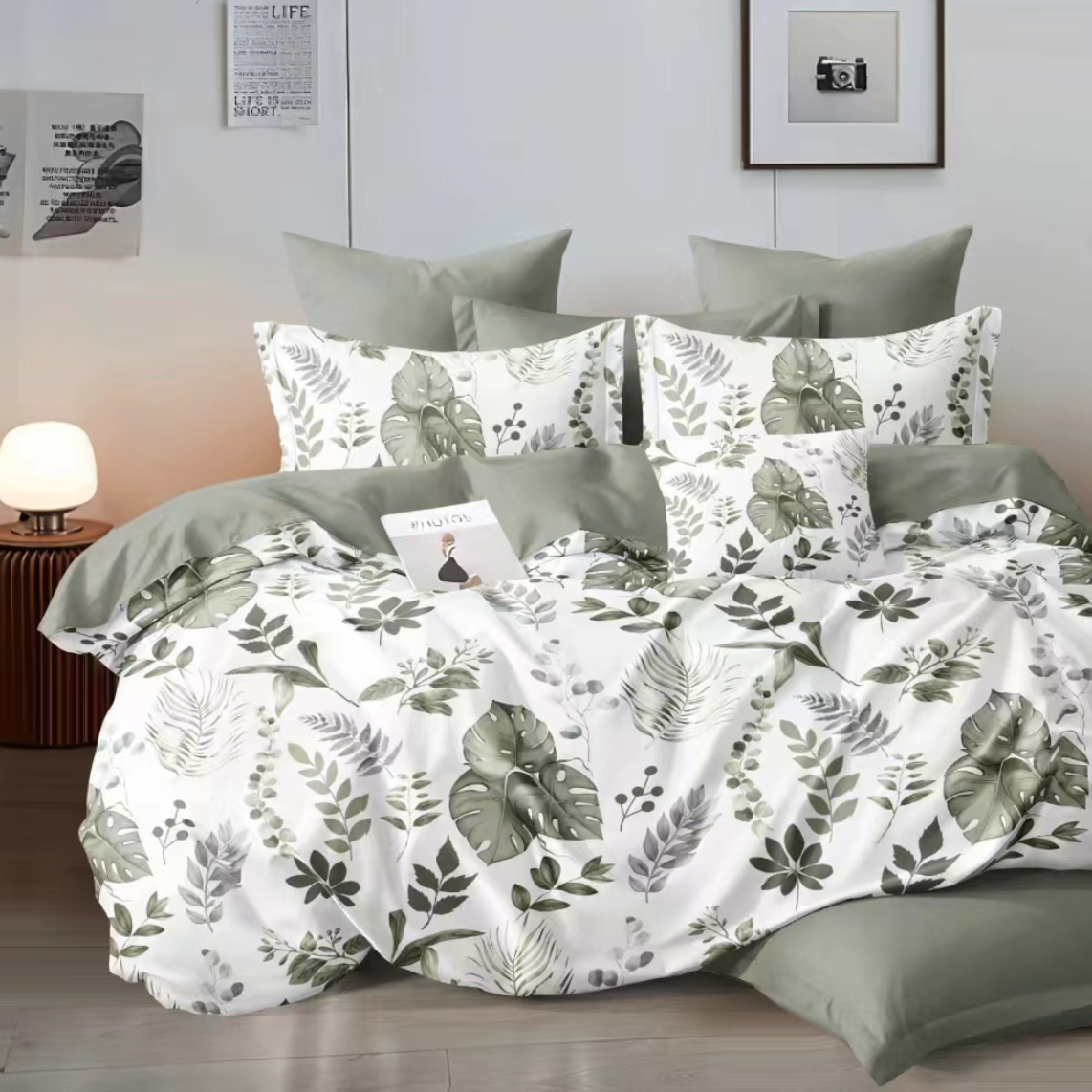 Pościel biało-zielona w liście 200x220 4 el. Celaya C-109