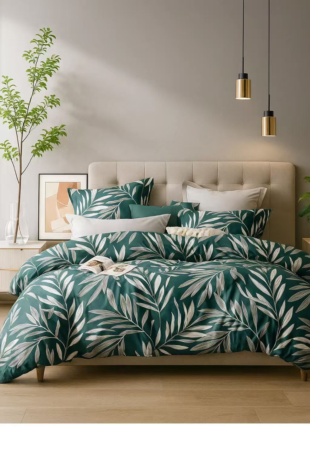 - Pościel w liście, butelkowa zielona