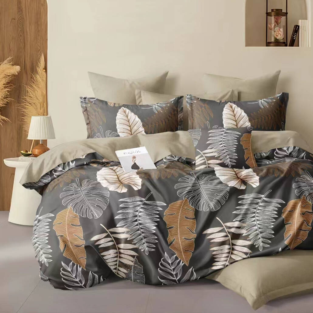 • Pościel w liście, dwukolorowa, ciemna szara, beżowa