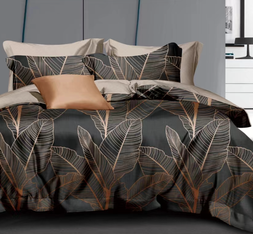 Pościel ciemna szara w liście 200x220 4 el. Reynosa C-113