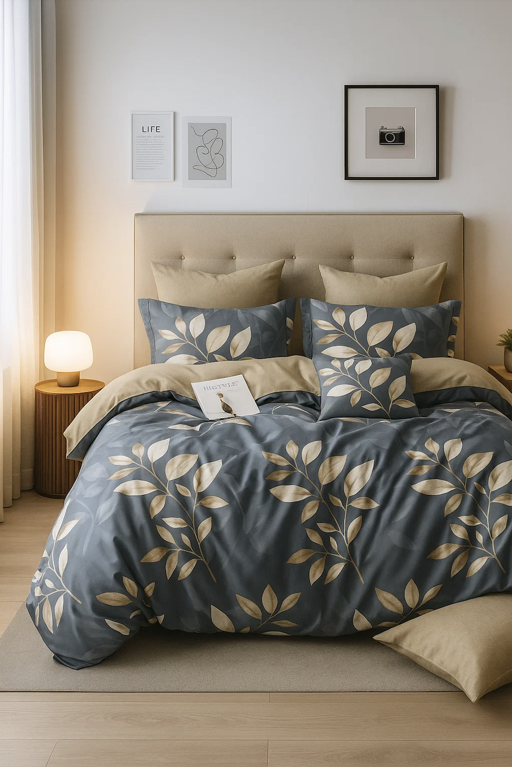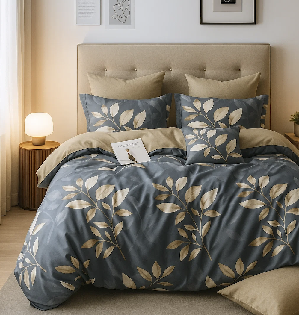 - Pościel w liście, ciemna szara, beżowa