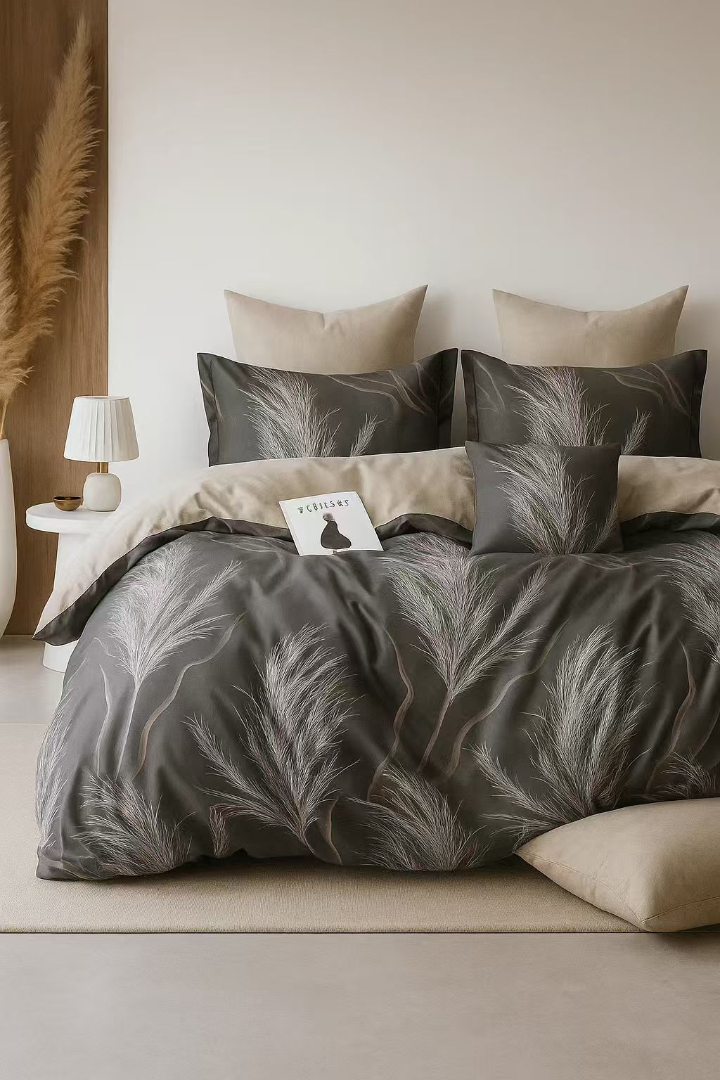 • Pościel w liście, ciemna szara, beżowa