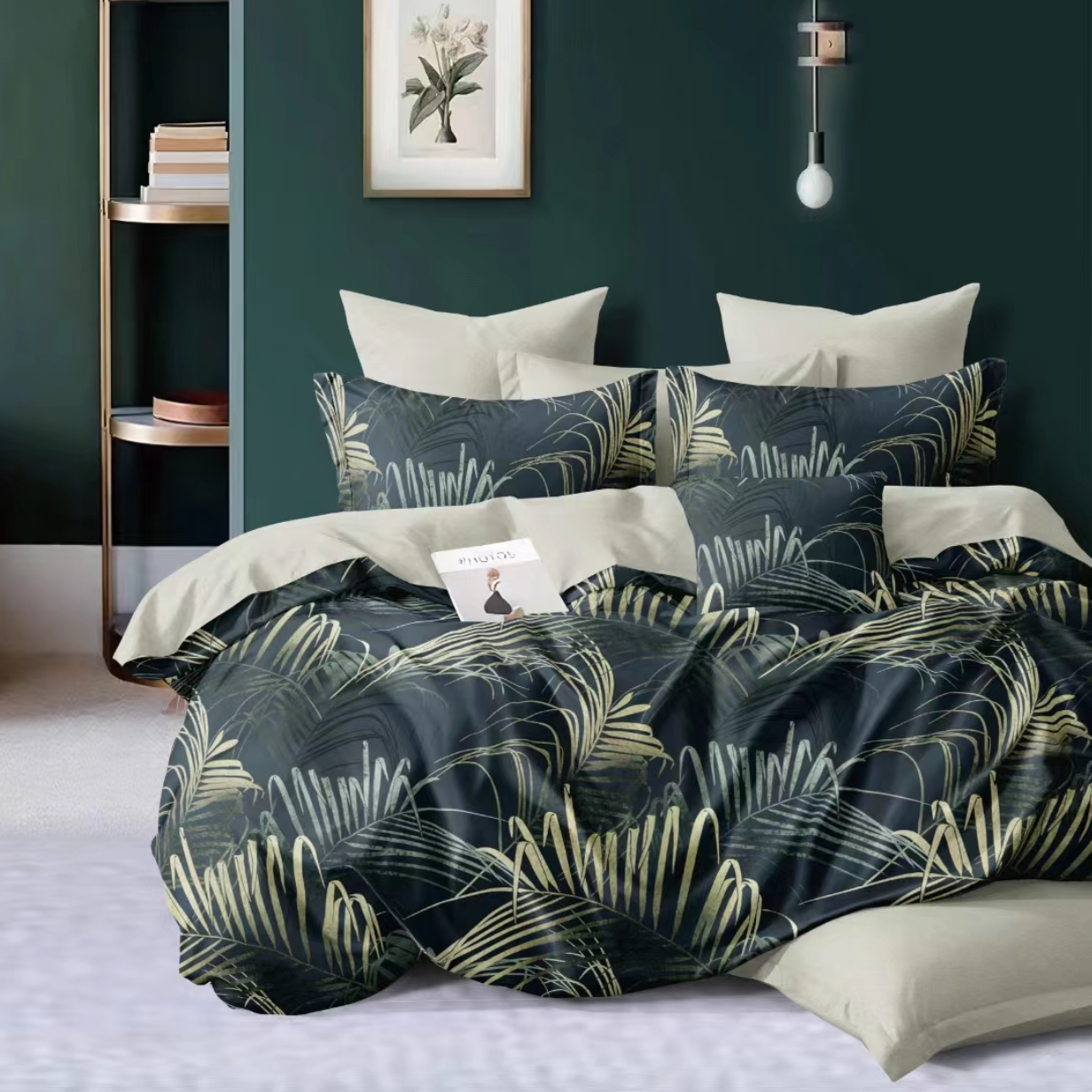 • Pościel w liście, dwukolorowa, ciemna szara, zielona