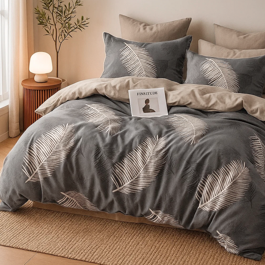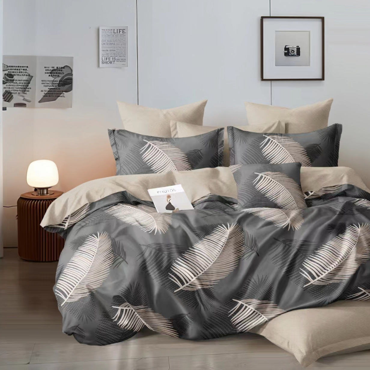 Pościel ciemna szara w piórka 160x200 3 el. Paraiso C-122